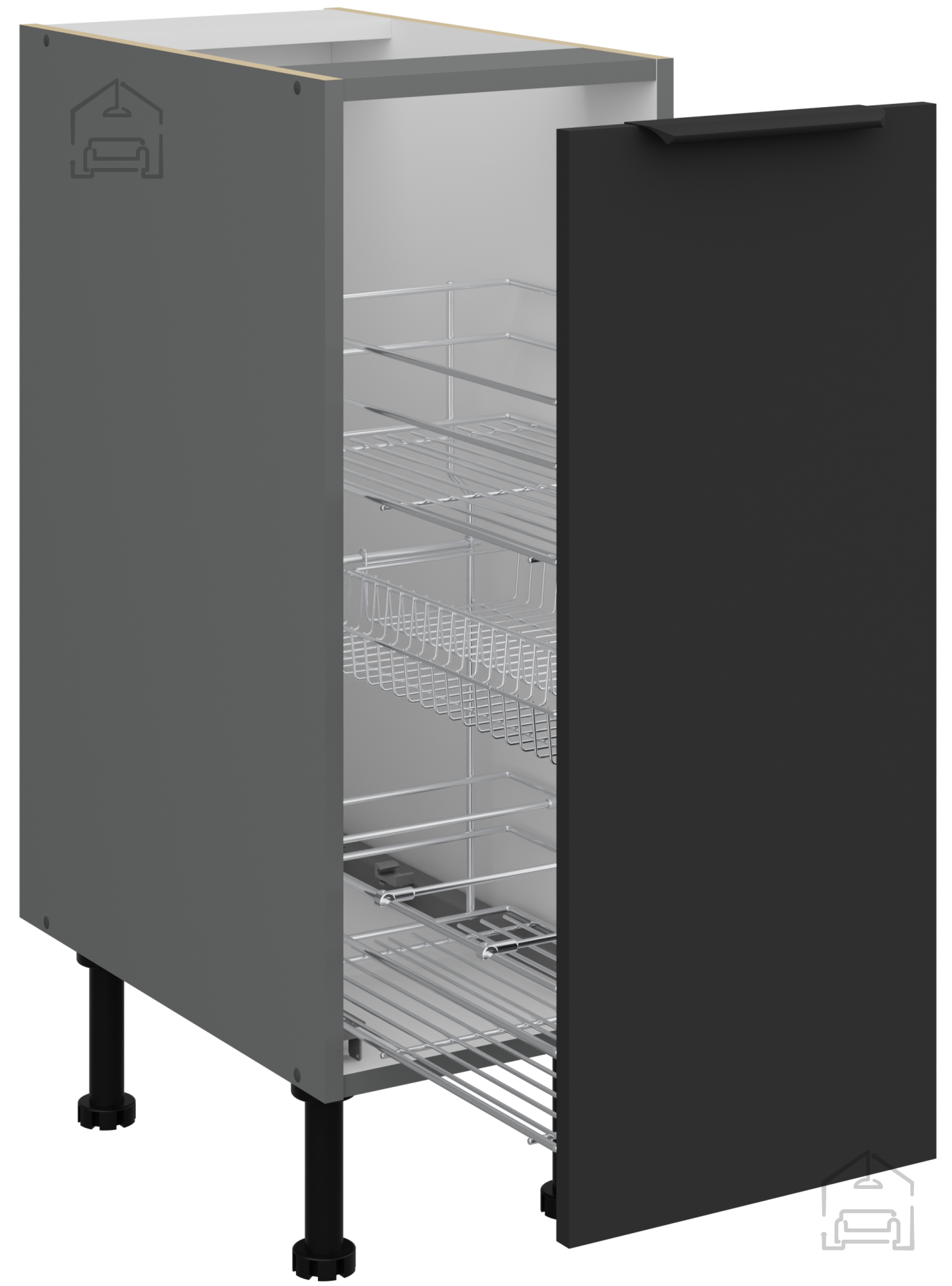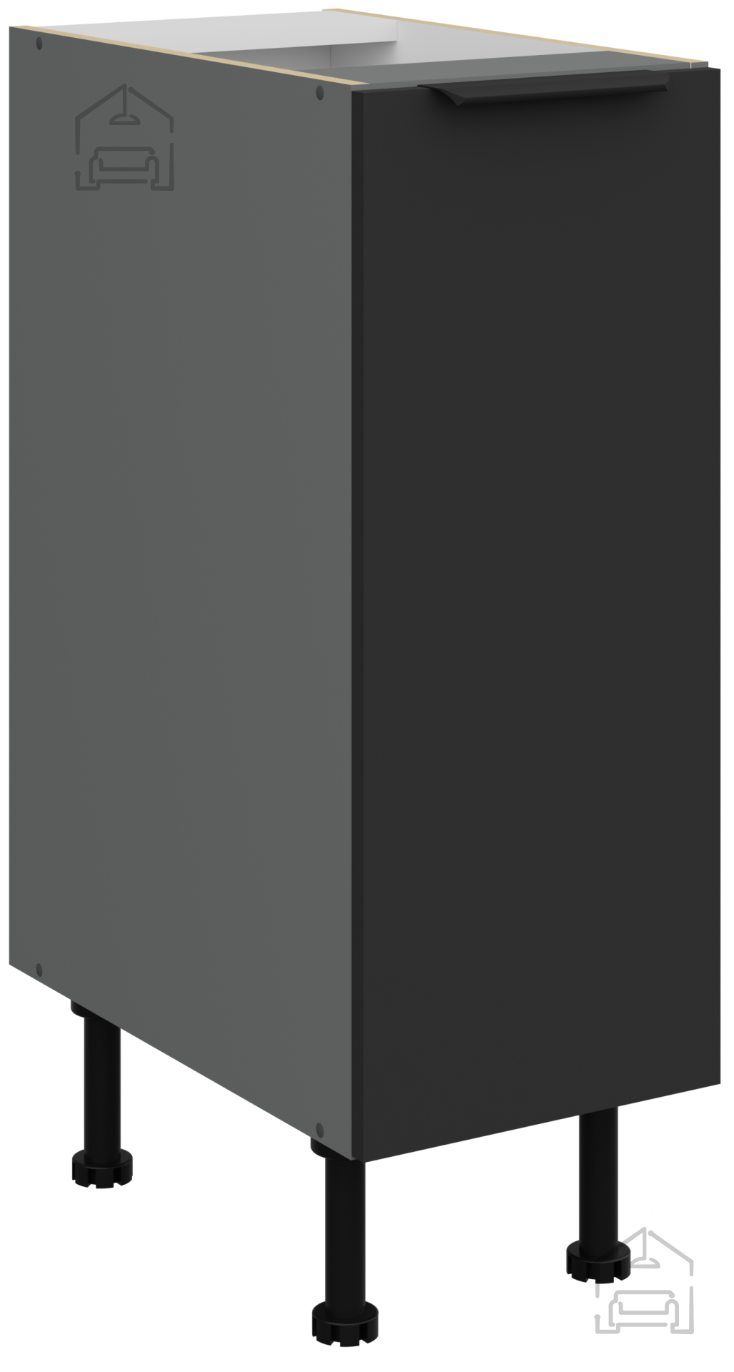 Die Grundlage jedes Elements ist eine laminierte Platte mit einer Stärke von 16 mm, die Stabilität und Widerstandsfähigkeit gegenüber täglicher Nutzung gewährleistet. Die Oberfläche ist leicht zu reinigen und resistent gegen Feuchtigkeit, Kratzer und Hitze – Eigenschaften, die in der Küche besonders wichtig sind. Die schwarz-anthrazitfarbenen Töne verleihen einen Hauch von Prestige und schaffen einen harmonischen Kontrast zu hellen Wänden oder natürlichen Materialien wie Holz und Stein.