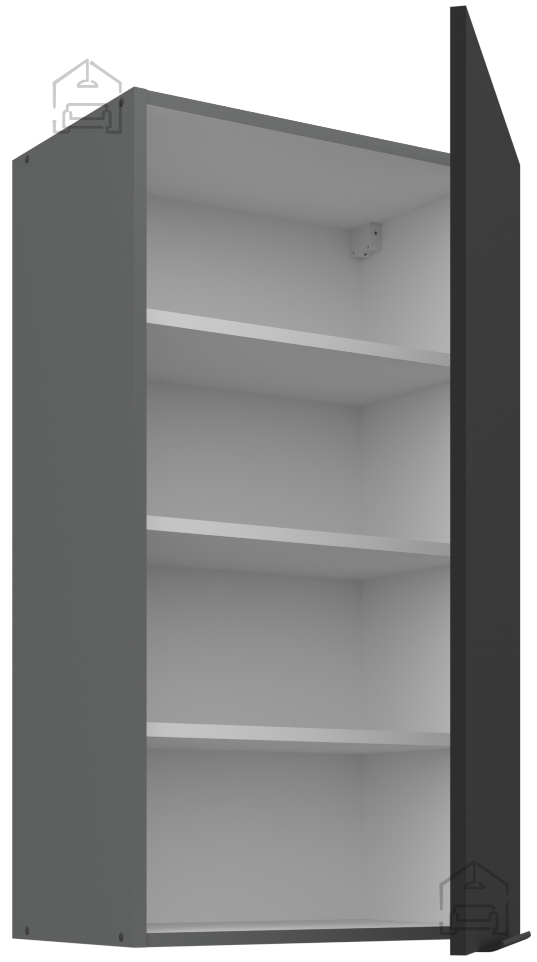Die Grundlage jedes Elements ist eine laminierte Platte mit einer Stärke von 16 mm, die Stabilität und Widerstandsfähigkeit im täglichen Gebrauch gewährleistet. Die Oberfläche ist leicht zu reinigen und resistent gegen Feuchtigkeit, Kratzer und Hitze – Eigenschaften, die in der Küche besonders wichtig sind. Schwarze und anthrazitfarbene Töne verleihen einen Hauch von Prestige und schaffen einen harmonischen Kontrast zu hellen Wänden oder natürlichen Materialien wie Holz und Stein.