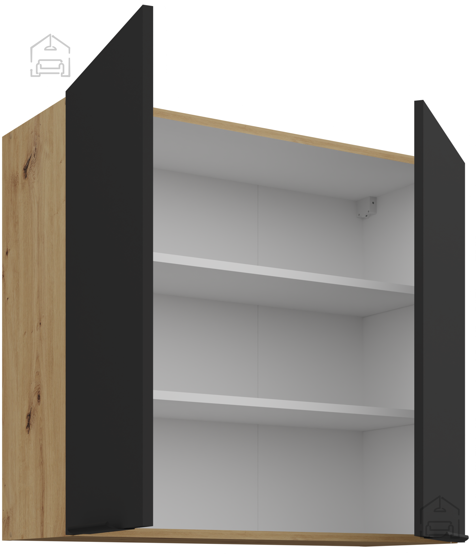 Küchenensemble Aria ist aus einer hochwertigen laminierten Platte mit einer Stärke von 16 mm gefertigt, was außergewöhnliche Stabilität und Langlebigkeit über viele Jahre der Nutzung gewährleistet. Die Oberfläche ist kratz-, feuchtigkeits- und hitzebeständig, sodass Ihre Küche auch nach täglichem Gebrauch immer wie neu aussieht. Schwarze Elemente sorgen für einen modernen Touch, während die Wärme der Artisan-Eiche einen natürlichen Charakter einbringt, der sowohl zu modernen als auch zu klassischen Interieurs hervorragend passt.