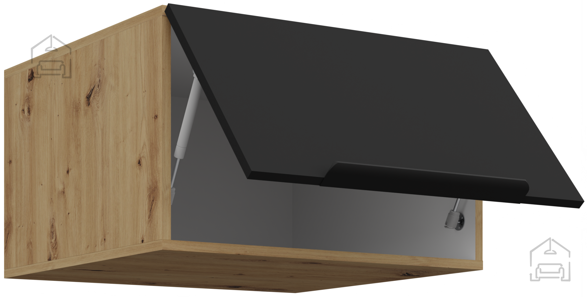 Küchenensemble Aria ist aus einer hochwertigen laminierten Platte mit einer Stärke von 16 mm gefertigt, was außergewöhnliche Stabilität und Langlebigkeit über viele Jahre der Nutzung gewährleistet. Die Oberfläche ist kratz-, feuchtigkeits- und hitzebeständig, sodass Ihre Küche auch bei täglichem Gebrauch immer wie neu aussieht. Schwarze Elemente sorgen für einen modernen Touch, während die Wärme der Artisan-Eiche den natürlichen Charakter einbringt, der sowohl zu modernen als auch klassischen Interieurs passt.
