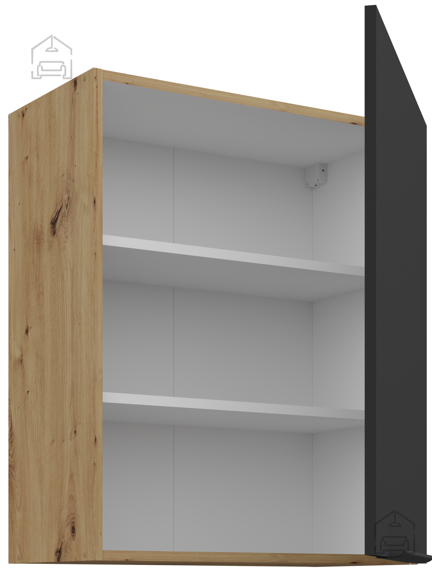 Küchenensemble Aria besteht aus einer hochwertigen laminierten Platte mit einer Stärke von 16 mm, was außergewöhnliche Stabilität und Langlebigkeit über viele Jahre der Nutzung gewährleistet. Die Oberfläche ist kratz-, feuchtigkeits- und hitzebeständig, sodass Ihre Küche auch nach täglichem Gebrauch immer wie neu aussieht. Schwarze Elemente sorgen für einen modernen Touch, während die Wärme der Artisan-Eiche einen natürlichen Charakter einbringt, der sowohl zu modernen als auch zu klassischen Interieurs hervorragend passt.