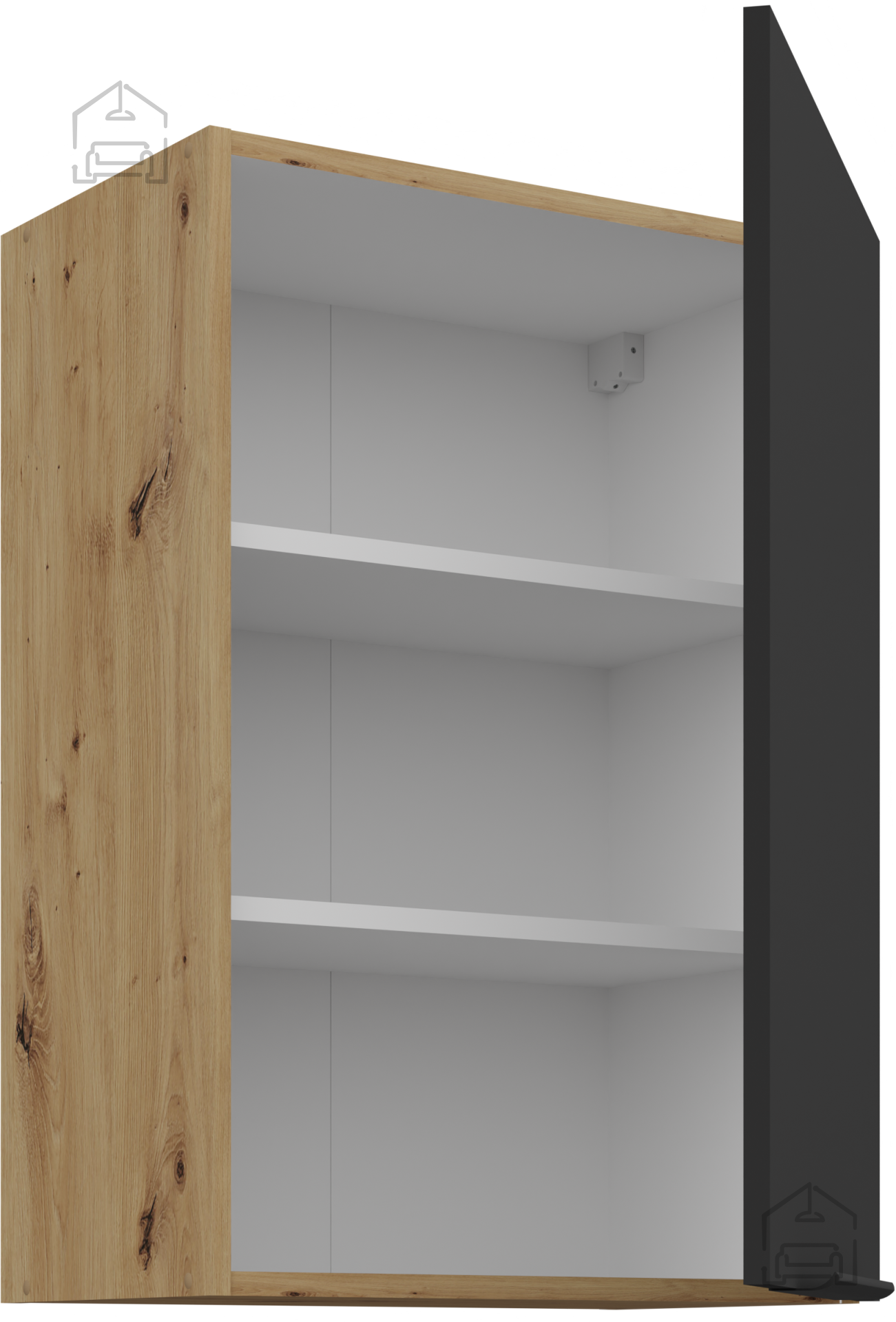 Küchenensemble Aria ist aus einer hochwertigen laminierten Platte mit einer Stärke von 16 mm gefertigt, was außergewöhnliche Stabilität und Langlebigkeit über viele Jahre der Nutzung gewährleistet. Die Oberfläche ist kratz-, feuchtigkeits- und hitzebeständig, sodass Ihre Küche immer wie neu aussieht, selbst nach täglichem Gebrauch. Schwarze Elemente sorgen für einen modernen Touch, während die Wärme der Artisan-Eiche einen natürlichen Charakter verleiht, der sowohl zu modernen als auch zu klassischen Interieurs passt.