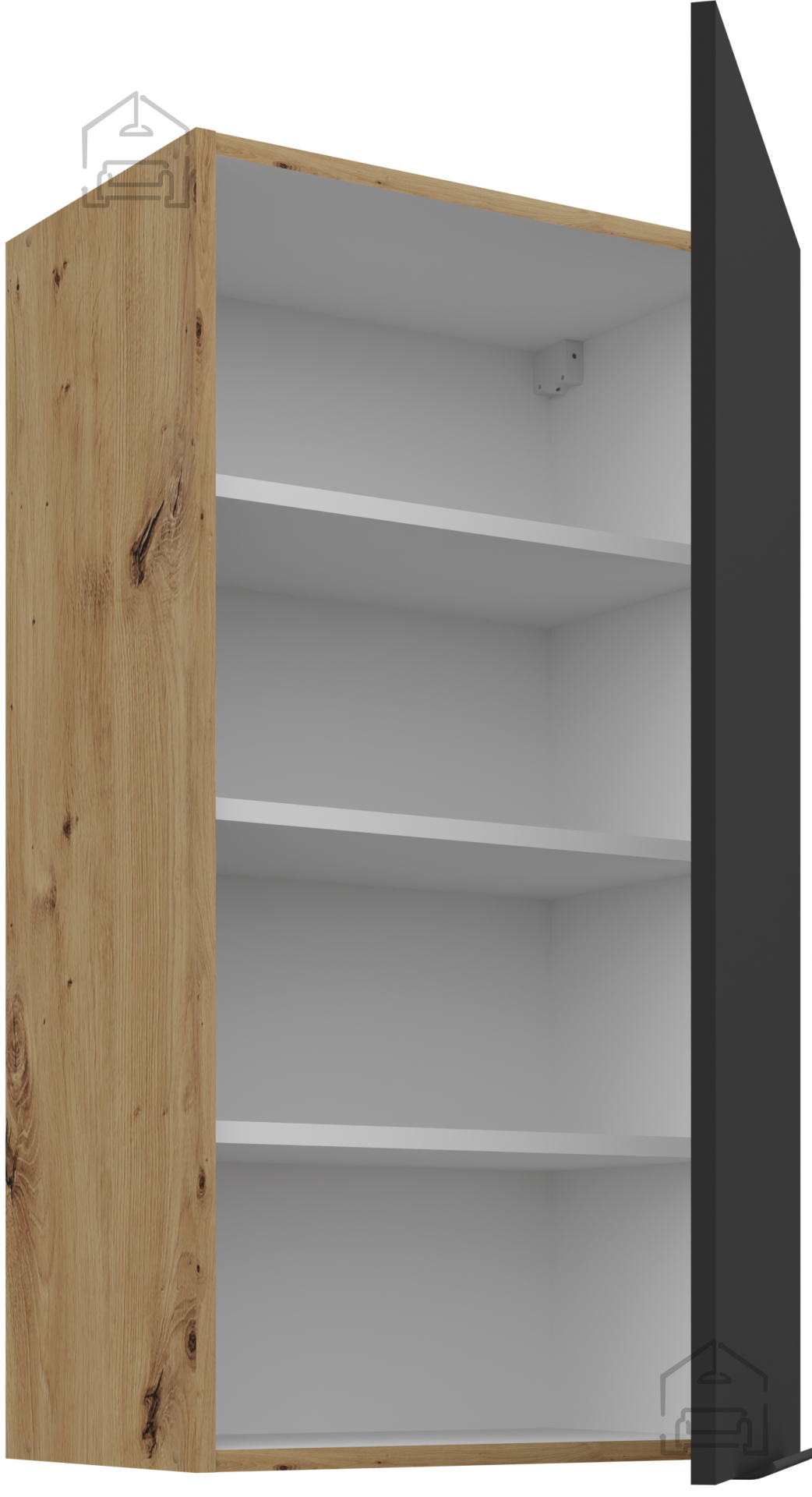 Küchenensemble Aria ist aus einer hochwertigen laminierten Platte mit einer Stärke von 16 mm gefertigt, was außergewöhnliche Stabilität und Langlebigkeit über Jahre der Nutzung gewährleistet. Die Oberfläche ist kratz-, feuchtigkeits- und hitzebeständig, sodass Ihre Küche immer wie neu aussieht, selbst nach täglichem Gebrauch. Schwarze Elemente sorgen für einen modernen Touch, während die Wärme der Artisan-Eiche einen natürlichen Charakter verleiht, der sowohl zu modernen als auch zu klassischen Interieurs hervorragend passt.