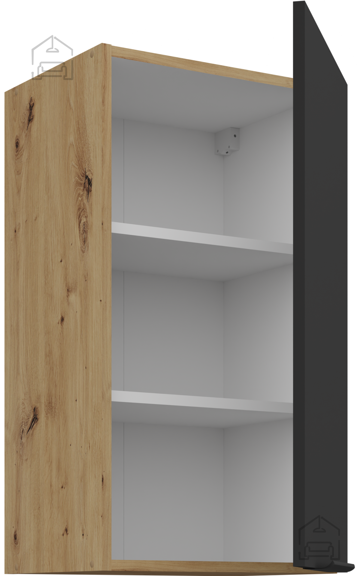 Küchenzeile Aria ist aus einer hochwertigen laminierten Platte mit einer Stärke von 16 mm gefertigt, was außergewöhnliche Stabilität und Langlebigkeit über viele Jahre der Nutzung garantiert. Die Oberfläche ist kratz-, feuchtigkeits- und hitzebeständig, sodass Ihre Küche immer wie neu aussieht, auch nach täglichem Gebrauch. Schwarze Elemente sorgen für einen modernen Touch, während die Wärme der Eiche Artisan einen natürlichen Charakter verleiht, der sowohl zu modernen als auch zu klassischen Interieurs hervorragend passt.