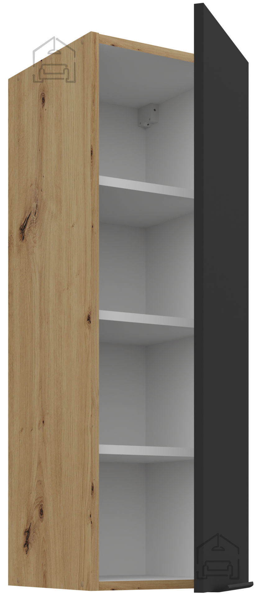 Küchenensemble Aria besteht aus einer hochwertigen laminierten Platte mit einer Dicke von 16 mm, was außergewöhnliche Stabilität und Langlebigkeit über Jahre hinweg gewährleistet. Die Oberfläche ist kratz-, feuchtigkeits- und hitzebeständig, sodass Ihre Küche auch nach täglichem Gebrauch immer wie neu aussieht. Schwarze Elemente sorgen für einen modernen Touch, während die Wärme der Eiche Artisan den natürlichen Charakter einbringt, der sowohl zu modernen als auch zu klassischen Interieurs passt.