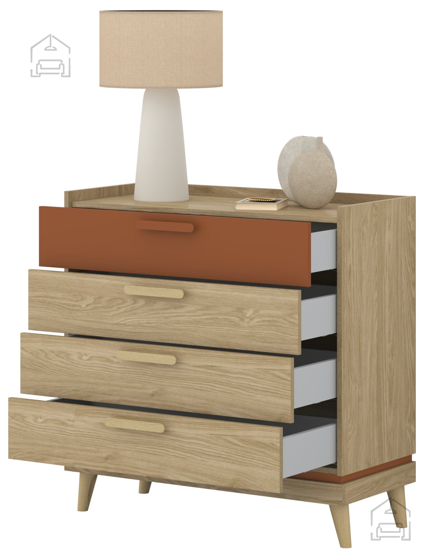 Jedes Schlafzimmer verdient seinen eigenen Hauch von Wärme, Natürlichkeit und Komfort. Der Nachttisch Scandi in der Farbkombination geölte Eiche/geölte Eiche-Ziegel ist die perfekte Wahl für alle, die skandinavischen Minimalismus, hochwertige Materialien und zeitloses Design schätzen. Mit seiner schlichten, aber ausdrucksstarken Ästhetik bringt er Ruhe und Ordnung in den Raum und bietet gleichzeitig praktischen Stauraum für alltägliche Dinge.