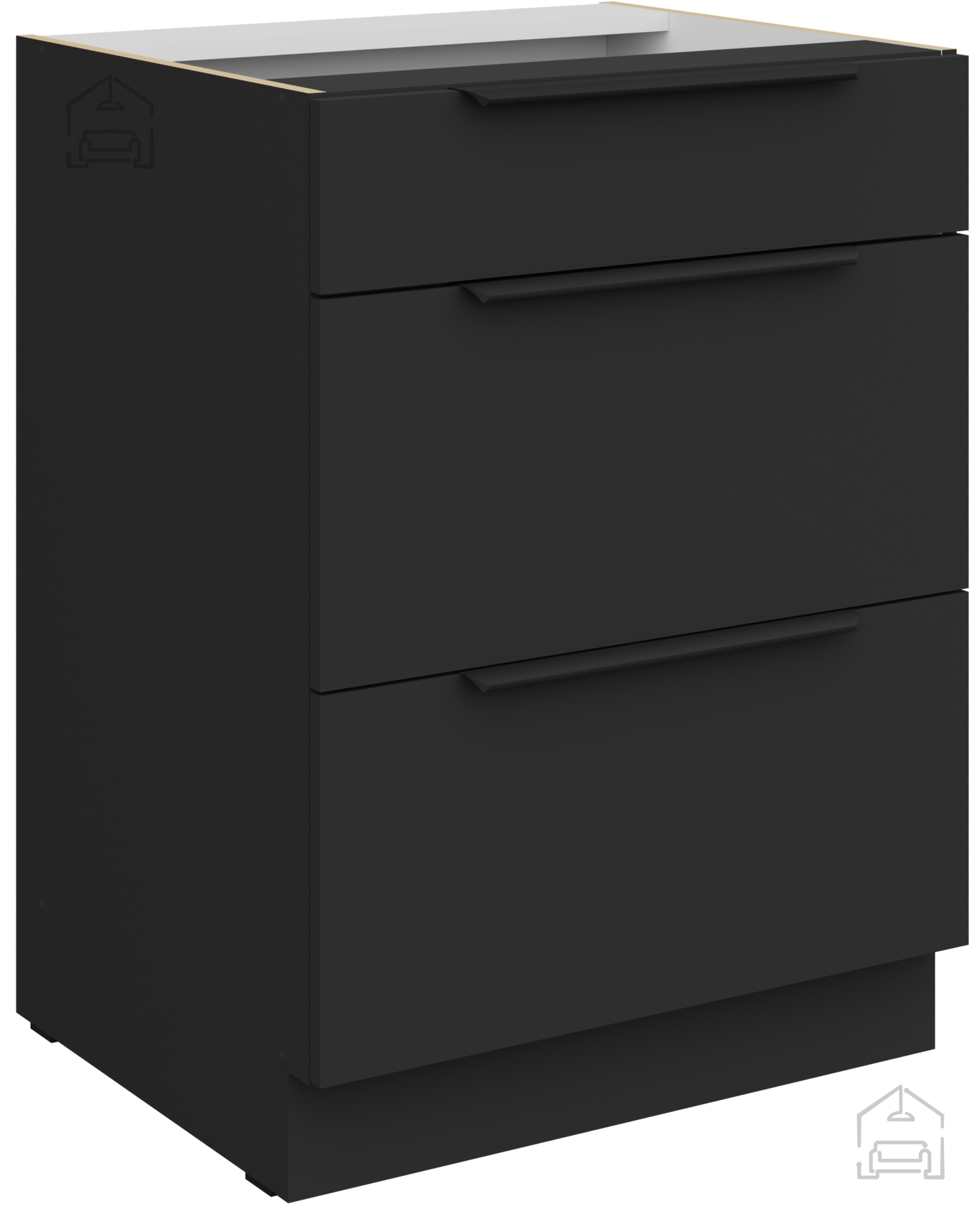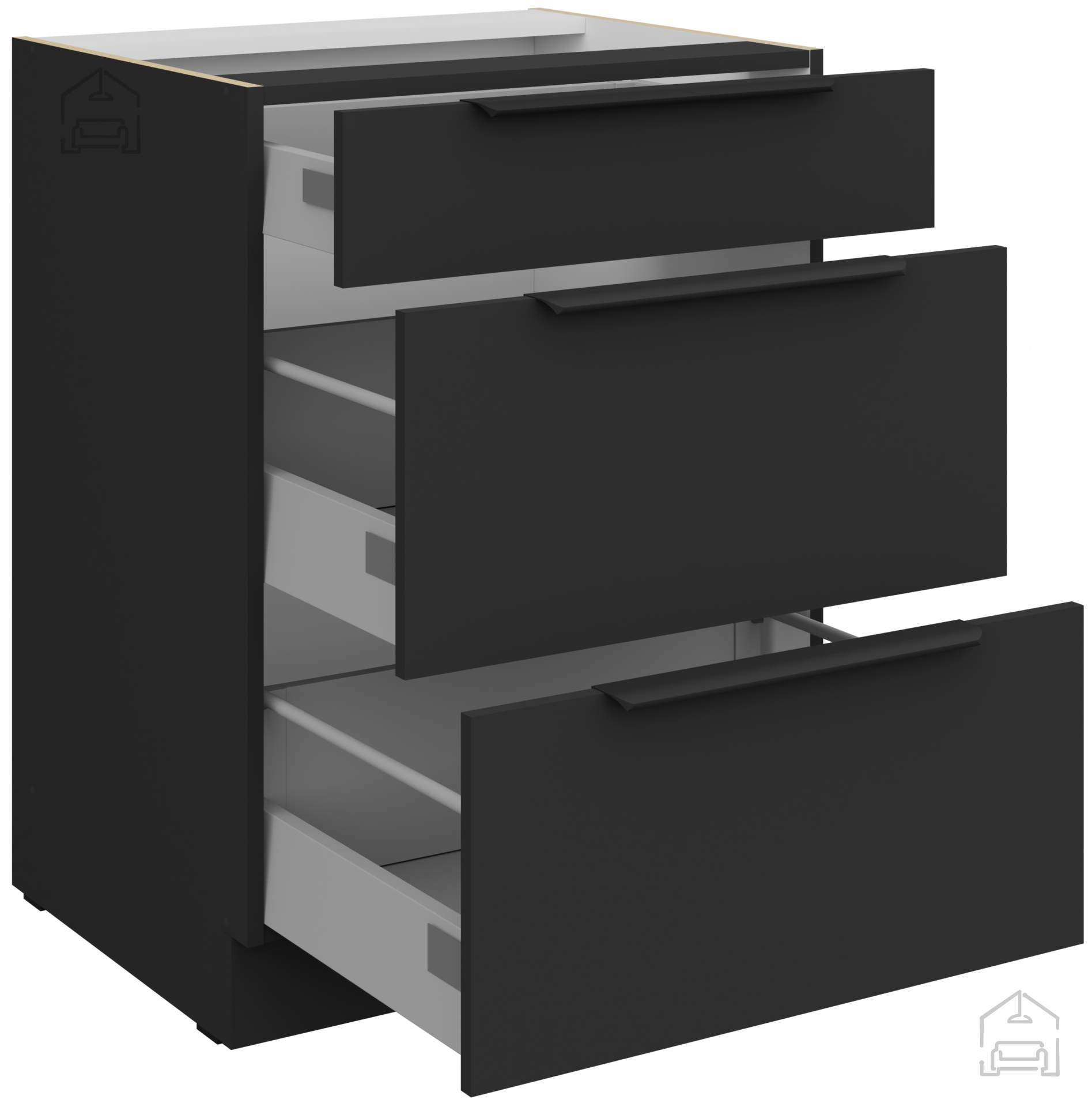 Dieses Küchenmöbelset passt sich hervorragend an verschiedene Raumtypen an – von kleineren Wohnungen bis zu größeren Familienküchen. Aufgrund seiner neutralen schwarzen Farbe lässt es sich gut mit natürlichen Materialien wie Holz, Beton oder Metall kombinieren, was zahlreiche Gestaltungsmöglichkeiten bietet. Egal, ob Sie Minimalismus oder industriellen Stil bevorzugen, diese Küche wird Ihr Ambiente mit Stil und Charakter ergänzen. Neben ästhetischer Vollkommenheit bietet sie auch ein praktisches Design. Strategisch angeordnete Elemente ermöglichen eine optimale Raumausnutzung, erleichtern die Essenszubereitung und halten Ordnung. Schubladen und Schränke bieten ausreichend Stauraum für Geschirr, Utensilien und Vorräte, sodass Ihre Küche immer organisiert und aufgeräumt bleibt.