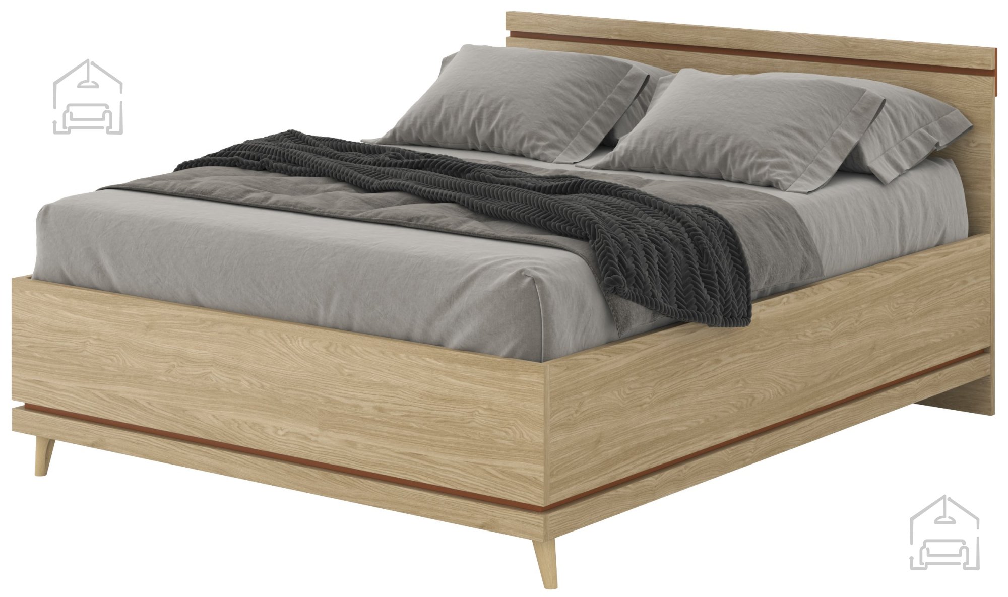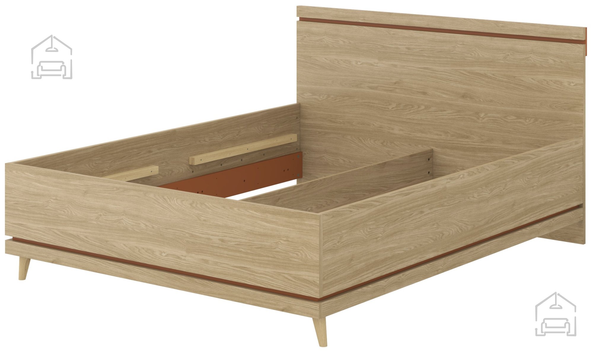 Das Bett Scandi begeistert mit seiner authentischen Optik aus geölter Eiche, die dem Raum ein Gefühl von Wärme und natürlicher Eleganz verleiht. Die Kombination aus Eiche und Ziegelton schafft einen angenehmen Kontrast, der dem Schlafzimmer Charakter und Individualität verleiht. Dank des universellen Farbschemas lässt sich das Bett leicht mit verschiedenen Wandfarben, Textilien und Accessoires kombinieren – von hellen bis zu dunkleren, mutigeren Farbtönen.