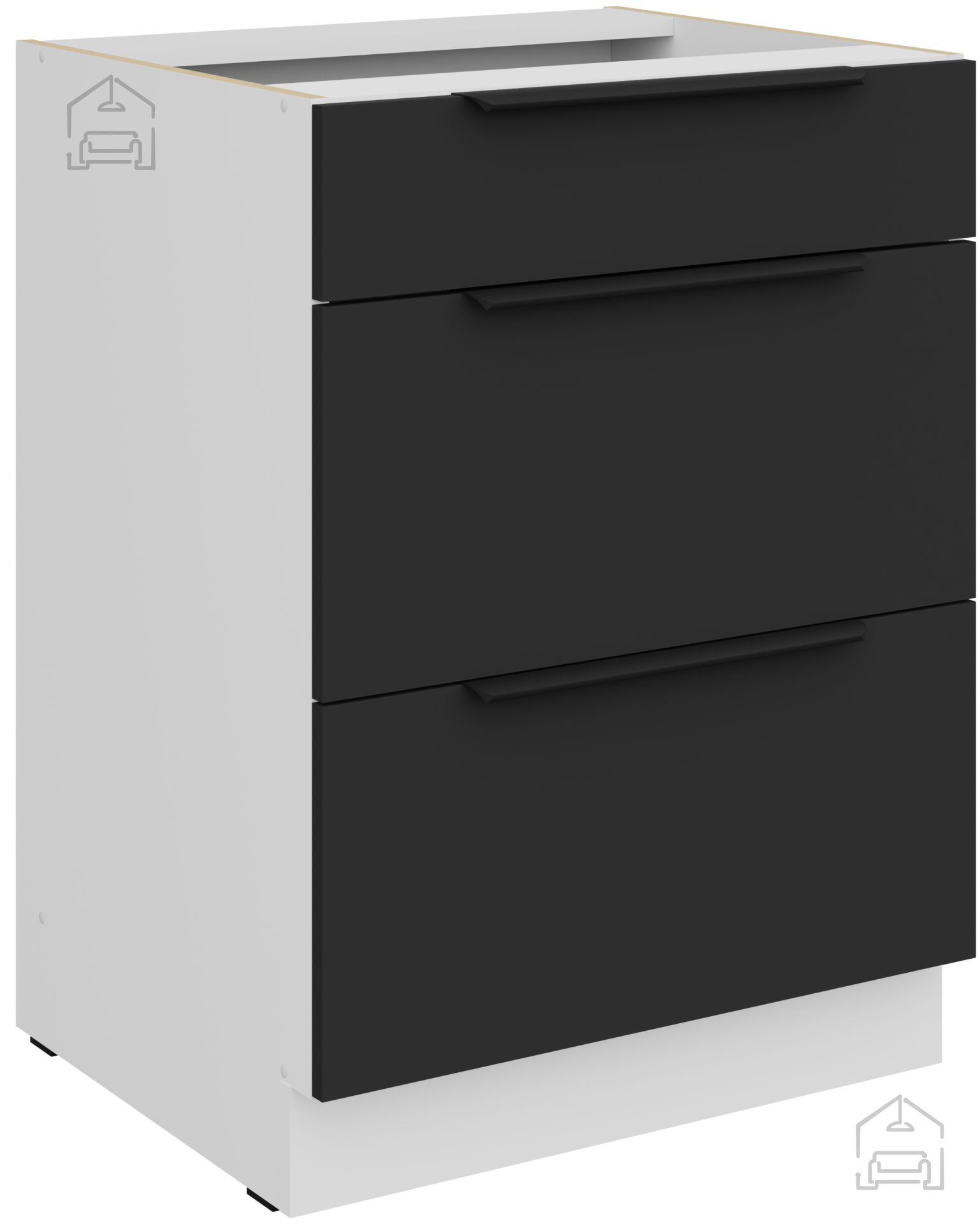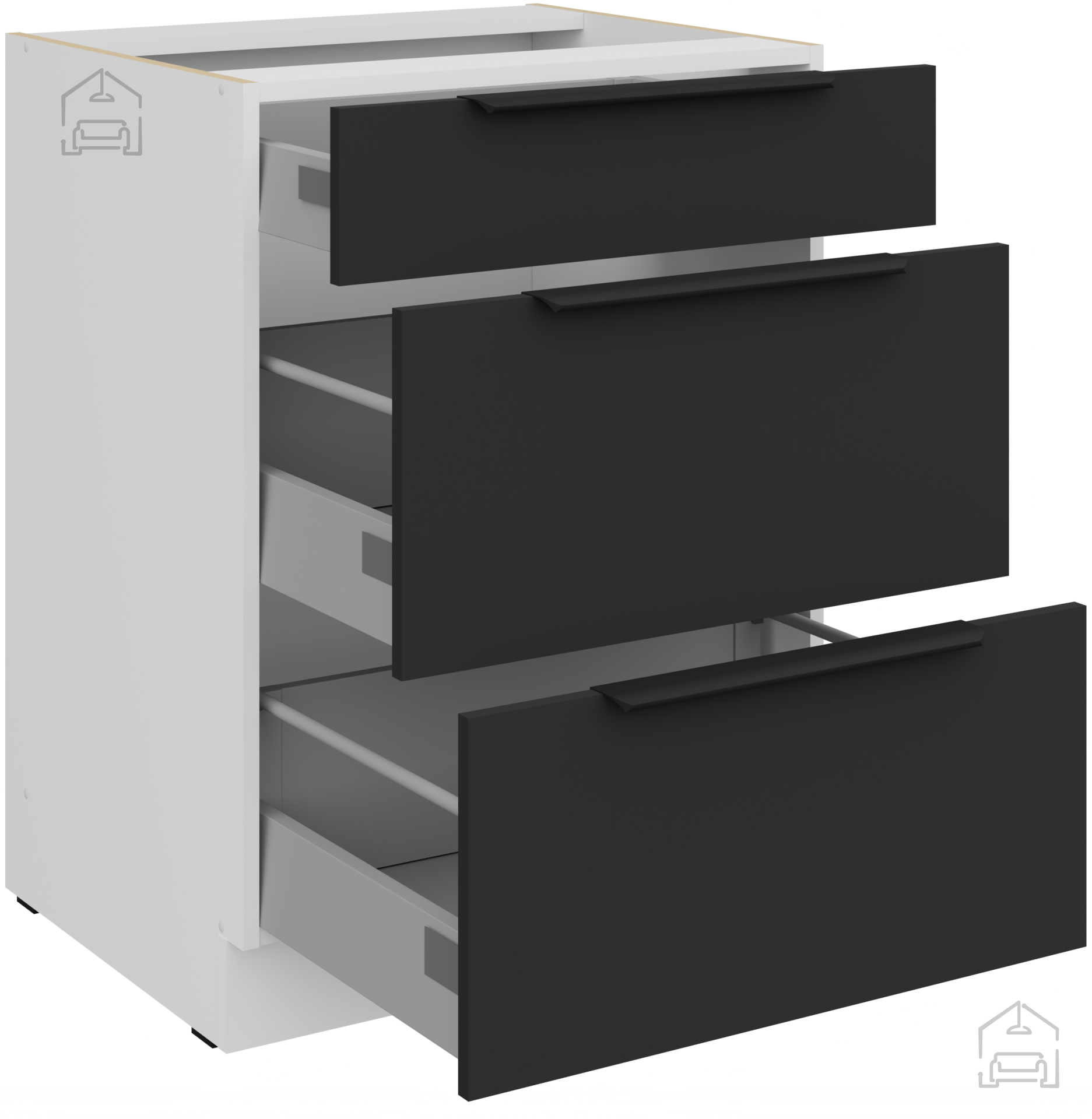 Schwarz und Weiß schaffen einen zeitlosen Kontrast, der sowohl zu modernen als auch zu klassischen Interieurs passt. Das Gehäuse und die Fronten aus 16 mm starker laminierter Platte gewährleisten eine lange Lebensdauer und einfache Pflege, während die schwarz-aluminiumfarbenen Griffe Edge UA-HEXA einen Hauch moderner Eleganz verleihen. Dank ihrer universellen Farbkombination passt die Küchenzeile Aria gut zu verschiedenen Arten von Bodenbelägen, Wänden und Accessoires – von Holztönen bis zu Betonoberflächen.