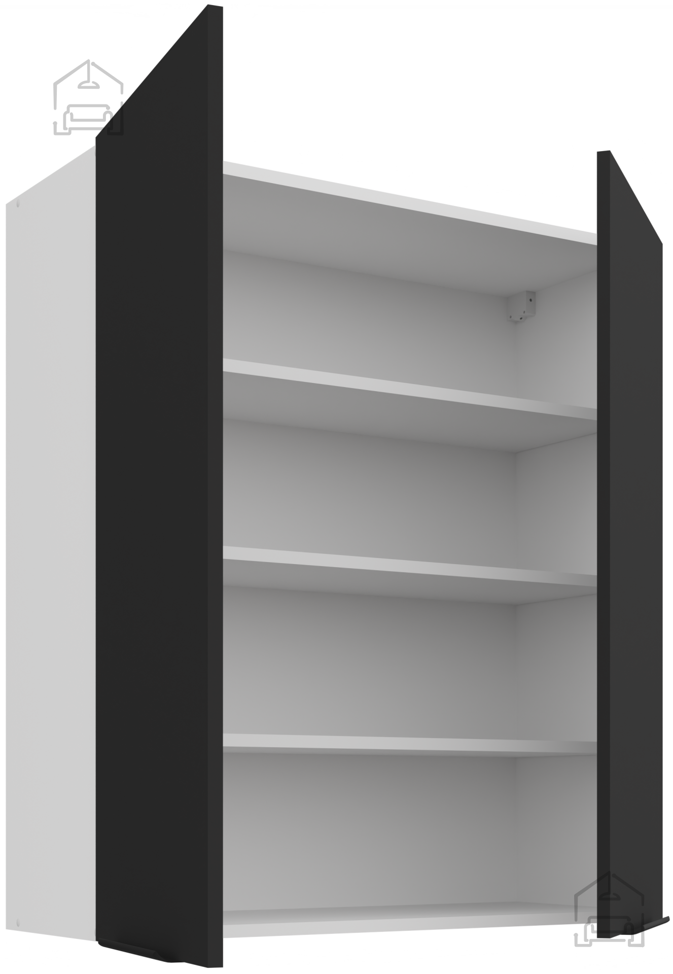 Schwarz und Weiß schaffen einen zeitlosen Kontrast, der sowohl zu modernen als auch zu klassischen Interieurs perfekt passt. Der Korpus und die Fronten aus laminierter Platte mit 16 mm Stärke gewährleisten eine lange Lebensdauer und einfache Pflege, während die schwarz-aluminiumfarbenen Griffe Edge UA-HEXA einen Hauch moderner Eleganz hinzufügen. Aufgrund ihrer universellen Farbkombination passt das Küchenensemble Aria wunderbar zu verschiedenen Arten von Bodenbelägen, Wänden und Accessoires – von Holztönen bis zu Betonoberflächen.