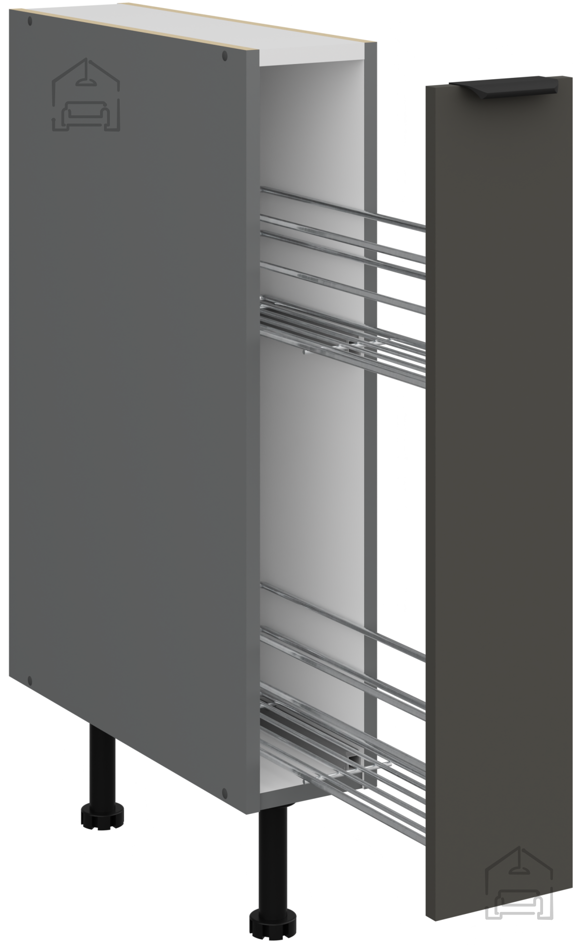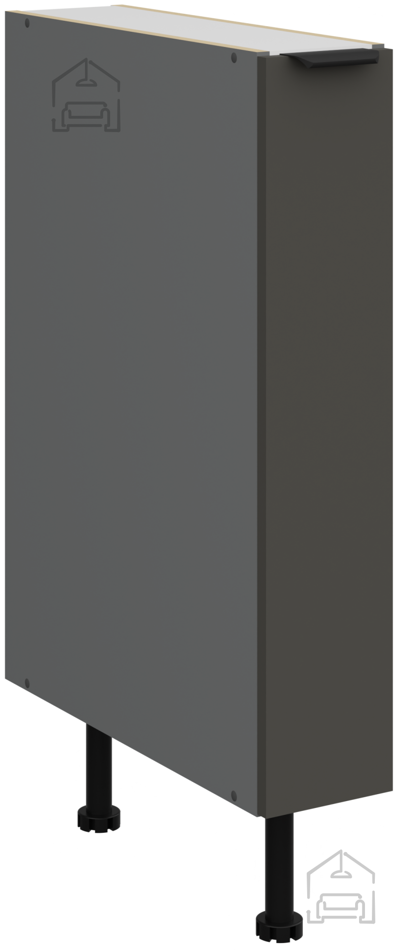 Jedes Element der Küchenzeile ist durchdacht gestaltet, um maximalen Komfort und Benutzerfreundlichkeit zu bieten. Der Korpus und die Fronten aus 16 mm starker laminierter Platte gewährleisten hervorragende Stabilität sowie Feuchtigkeits- und Abriebfestigkeit – was bedeutet, dass Ihre Küche ihr ursprüngliches Aussehen lange behalten wird. Schwarz-aluminiumfarbene Griffe Edge UA-HEXA mit einem Abstand von 64 mm bis 320 mm verleihen einen modernen metallischen Touch und ermöglichen ein bequemes Öffnen der Türen und Schubladen. Ihre elegante Form harmoniert perfekt mit dem Kontrast zwischen grauen und anthrazitfarbenen Oberflächen und betont den modernen Charakter des gesamten Raumes.