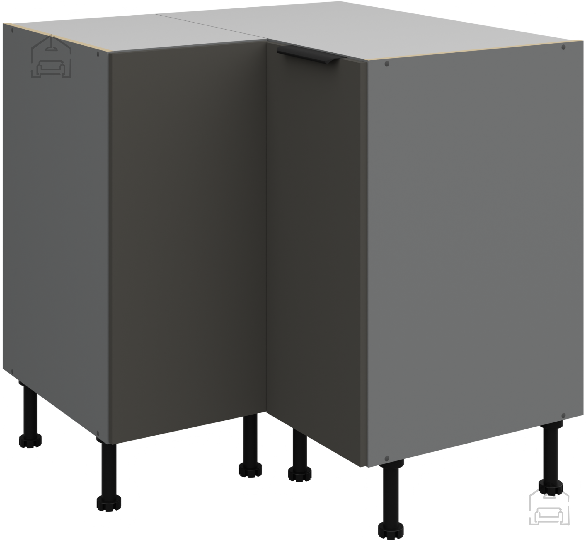Jedes Element der Küchenzeile ist durchdacht gestaltet, um maximalen Komfort und Benutzerfreundlichkeit zu bieten. Korpus und Fronten aus 16 mm starkem laminiertem Plattenmaterial gewährleisten hervorragende Stabilität sowie Feuchtigkeits- und Abriebfestigkeit – was bedeutet, dass Ihre Küche lange ihr ursprüngliches Aussehen behält. Schwarz-aluminiumfarbene Griffe Edge UA-HEXA mit einem Abstand von 64 mm bis 320 mm verleihen einen modernen metallischen Akzent und ermöglichen ein bequemes Öffnen von Türen und Schubladen. Ihre elegante Form harmoniert perfekt mit dem Kontrast zwischen grauen und anthrazitfarbenen Flächen und betont den modernen Charakter des gesamten Raumes.