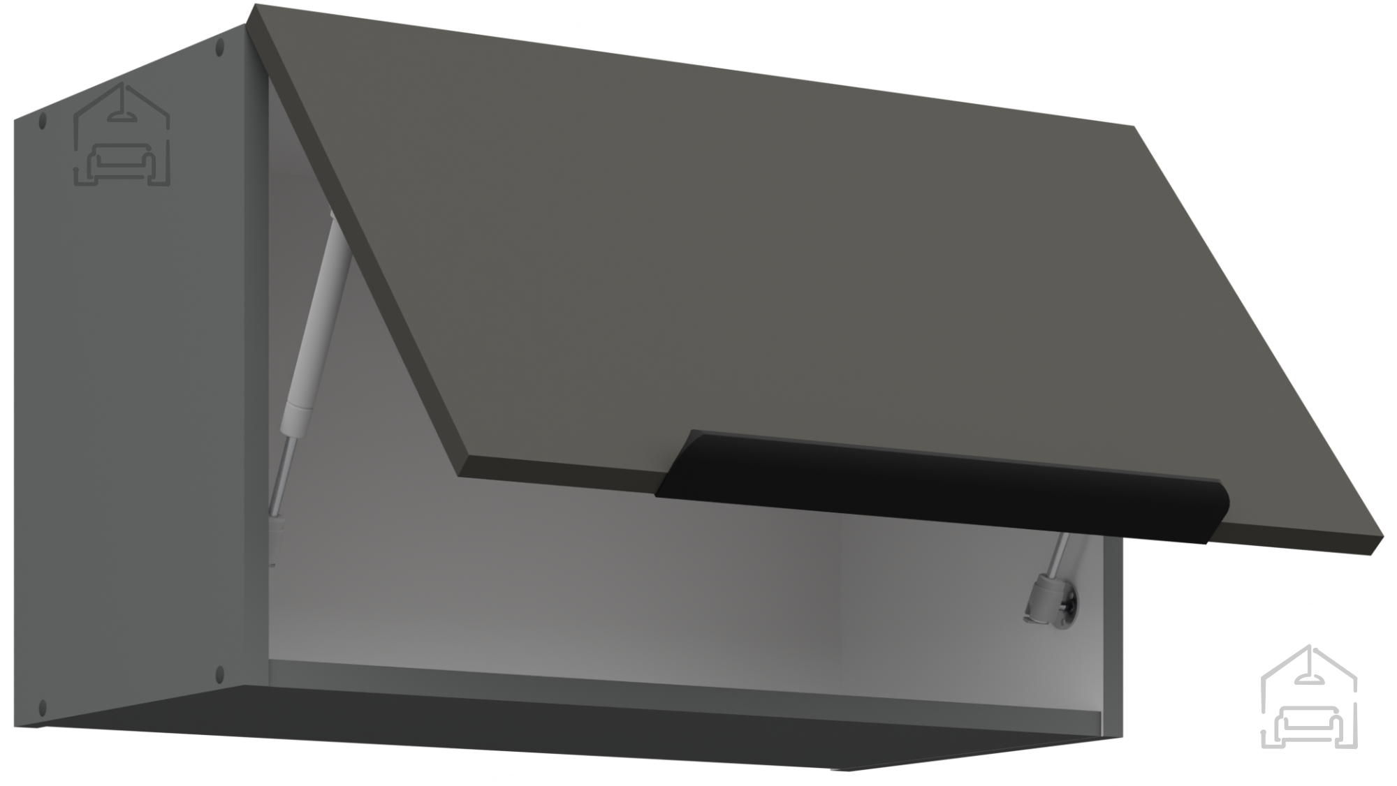 Jedes Element der Küchenzeile ist durchdacht gestaltet, um maximalen Komfort und Benutzerfreundlichkeit zu bieten. Korpus und Fronten aus 16 mm starker laminierter Platte gewährleisten hervorragende Stabilität sowie Feuchtigkeits- und Abriebfestigkeit – was bedeutet, dass Ihre Küche lange ihr ursprüngliches Aussehen behält. Schwarz-aluminiumfarbene Griffe Edge UA-HEXA mit einem Abstand von 64 mm bis 320 mm verleihen einen modernen metallischen Touch und ermöglichen ein komfortables Öffnen von Türen und Schubladen. Ihre elegante Form harmoniert perfekt mit dem Kontrast zwischen grauen und anthrazitfarbenen Oberflächen und betont den modernen Charakter des gesamten Raumes.