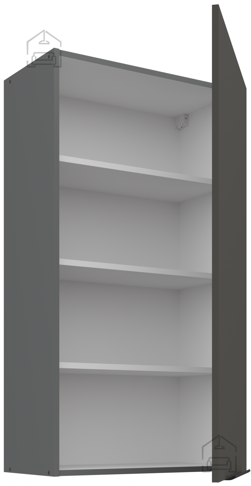 Jedes Element des Küchenensembles ist durchdacht gestaltet, um maximalen Komfort und Nutzen zu bieten. Das Gehäuse und die Fronten aus 16 mm starker laminierter Platte gewährleisten hervorragende Stabilität sowie Feuchtigkeits- und Abriebfestigkeit – was bedeutet, dass Ihre Küche ihr ursprüngliches Aussehen lange beibehält. Schwarz-aluminiumfarbene Griffe Edge UA-HEXA mit einem Abstand von 64 mm bis 320 mm verleihen einen modernen metallischen Touch und ermöglichen ein komfortables Öffnen von Türen und Schubladen. Ihre elegante Form harmoniert perfekt mit dem Kontrast zwischen grauen und anthrazitfarbenen Oberflächen und betont den modernen Charakter des gesamten Raumes.