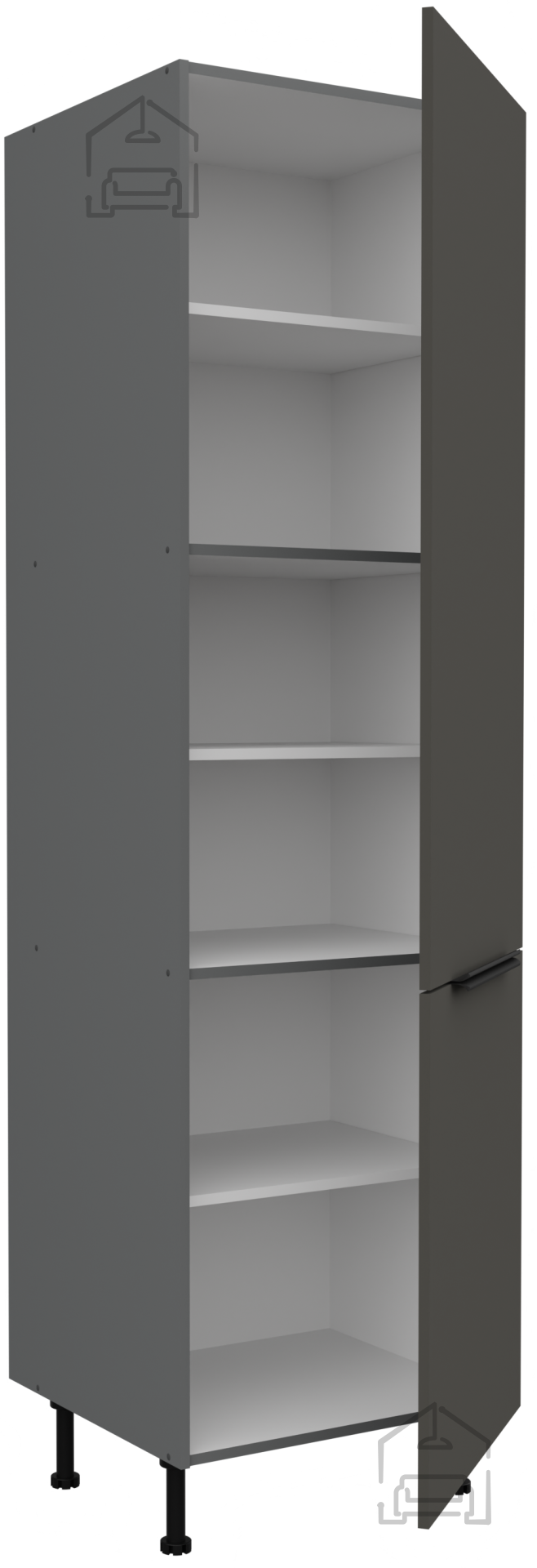 Jedes Element der Küchenzeile ist durchdacht gestaltet, um maximalen Komfort und Benutzerfreundlichkeit zu bieten. Das Gehäuse und die Fronten aus 16 mm starker laminierter Platte gewährleisten hervorragende Stabilität sowie Feuchtigkeits- und Verschleißbeständigkeit – was bedeutet, dass Ihre Küche ihr ursprüngliches Aussehen lange behält. Schwarz-aluminiumfarbene Griffe Edge UA-HEXA mit einem Abstand von 64 mm bis 320 mm verleihen einen modernen metallischen Touch und ermöglichen ein bequemes Öffnen der Türen und Schubladen. Ihre elegante Form harmoniert perfekt mit dem Kontrast zwischen grauen und anthrazitfarbenen Oberflächen und betont den modernen Charakter des gesamten Raumes.
