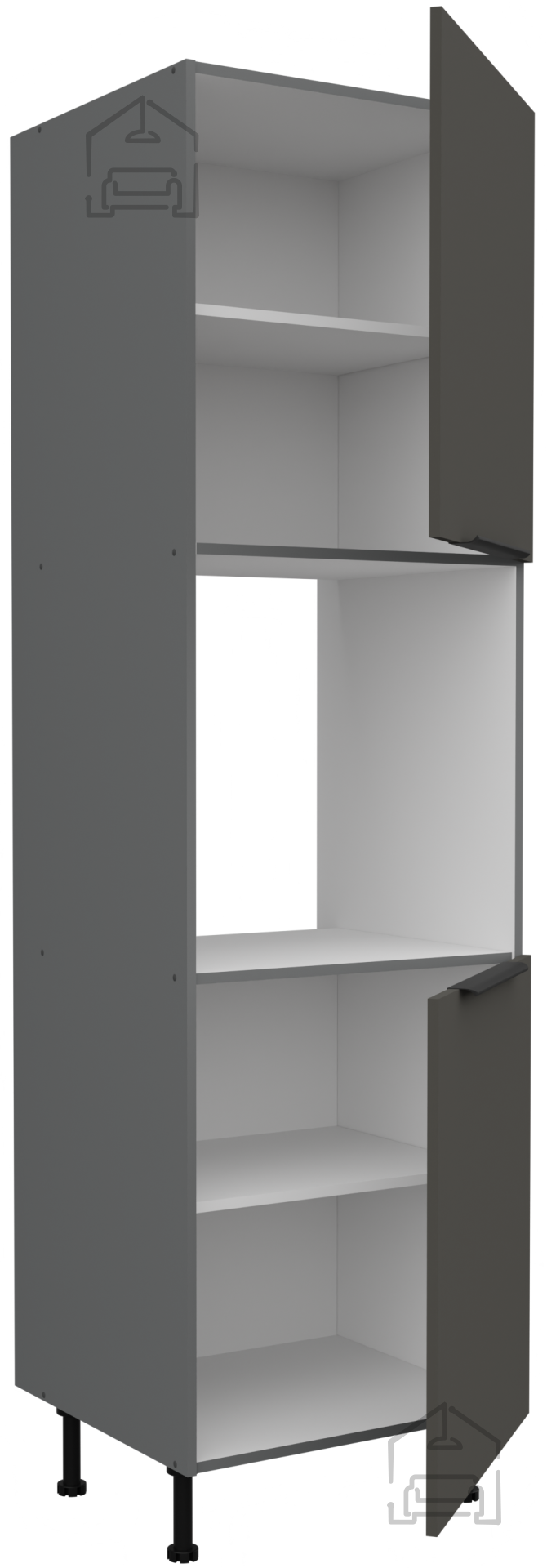 Jedes Element des Küchenensembles ist durchdacht gestaltet, um maximalen Komfort und Benutzerfreundlichkeit zu bieten. Der Korpus und die Fronten aus 16 mm starker laminierter Platte gewährleisten hervorragende Festigkeit sowie Feuchtigkeits- und Abriebfestigkeit – was bedeutet, dass Ihre Küche lange ihr ursprüngliches Aussehen behält. Schwarz-aluminiumfarbene Griffe Edge UA-HEXA mit einem Abstand von 64 mm bis 320 mm verleihen einen modernen metallischen Akzent und ermöglichen ein bequemes Öffnen der Türen und Schubladen. Ihre elegante Form harmoniert perfekt mit dem Kontrast zwischen grauen und anthrazitfarbenen Oberflächen und betont den modernen Charakter des gesamten Raumes.