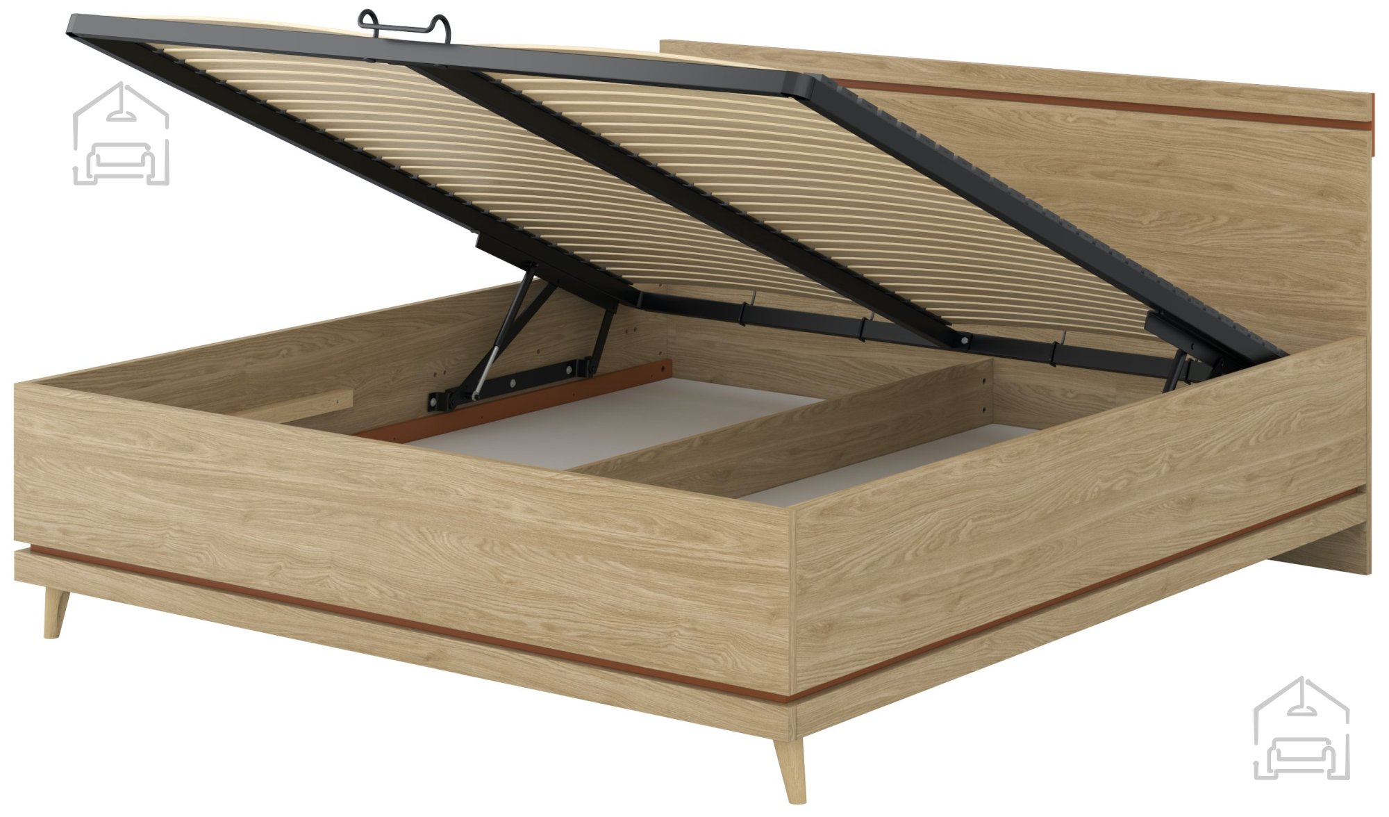 Jedes Zuhause braucht ein Schlafzimmer, das ein perfektes Gleichgewicht zwischen Ästhetik, Komfort und Funktionalität bietet. Ein Bett mit Hebemechanismus in der Kombination geölte Eiche/geölte Eiche-Ziegel ist eine ausgezeichnete Wahl für alle, die natürliche Materialien, modernes Design und intelligente Aufbewahrungslösungen schätzen. Mit seiner klaren Form und den warmen Holztönen bringt es ein Gefühl von Ruhe und Behaglichkeit ins Schlafzimmer und sorgt gleichzeitig für eine optimale Raumausnutzung.