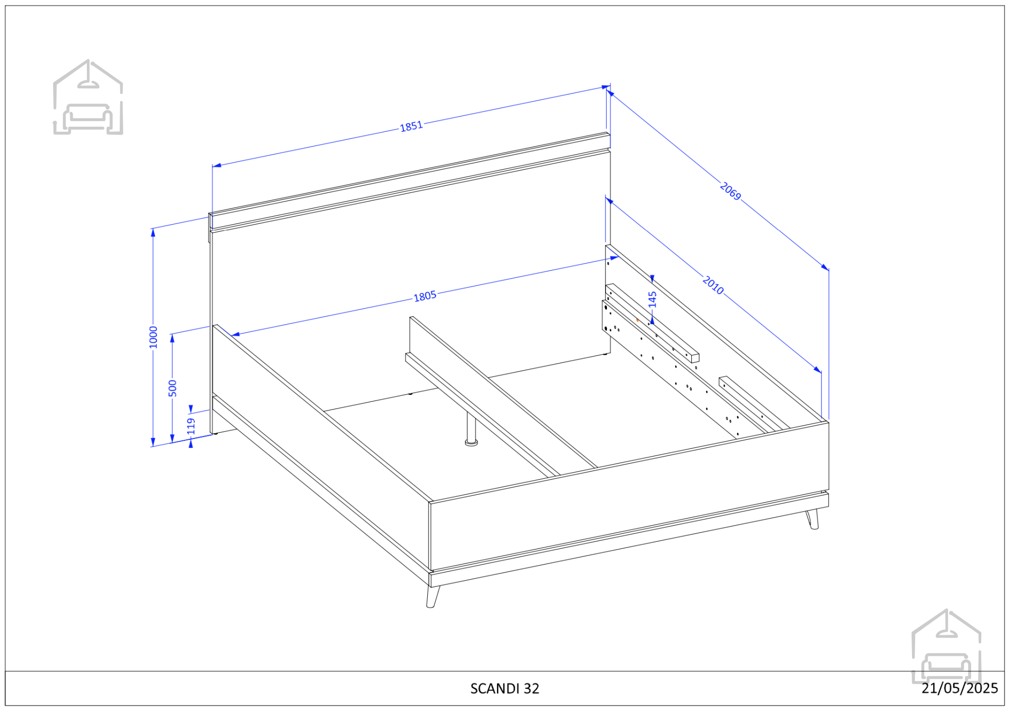 Kunststofffüße sorgen für Stabilität und erleichtern die Reinigung unter dem Bett, während die gesamte Konstruktion zuverlässig den hochwertigen Lattenrost trägt, der für optimale Belüftung und Unterstützung der Matratze sorgt. Das Bett ist so konzipiert, dass es perfekt zu den Maßen 185x207x100 cm passt und Platz für eine Liegefläche von 180x200 cm bietet.
