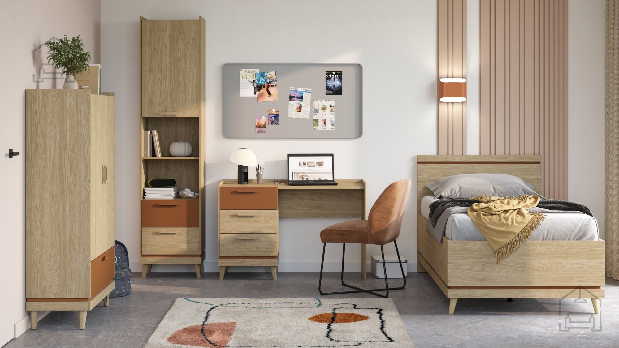 Das Bett besteht aus einer hochwertigen Möbelplatte mit einer Stärke von 15 mm und 22 mm, was Stabilität und Langlebigkeit gewährleistet. ABS-Kanten erhöhen zusätzlich die Widerstandsfähigkeit gegen mechanische Beschädigungen, sodass das Bett auch nach vielen Jahren der Nutzung sein Aussehen behält. Die Farbkombination aus geölter Eiche und Ziegeloberfläche wirkt natürlich und angenehm und lässt sich leicht mit verschiedenen Möbel- und Dekorfarbtönen kombinieren. Helvetia meble, ein renommierter polnischer Hersteller, ist bekannt für hohe Qualität und präzise Verarbeitung, sodass Sie dieses Möbelstück mit Vertrauen für Ihr Zuhause wählen können. Das Design des Rahmens aus Spanplatte bietet eine stabile Unterstützung, während der Lattenrost eine optimale Belüftung der Matratze gewährleistet, was zu besserem Schlaf und längerer Haltbarkeit der Matratze beiträgt.