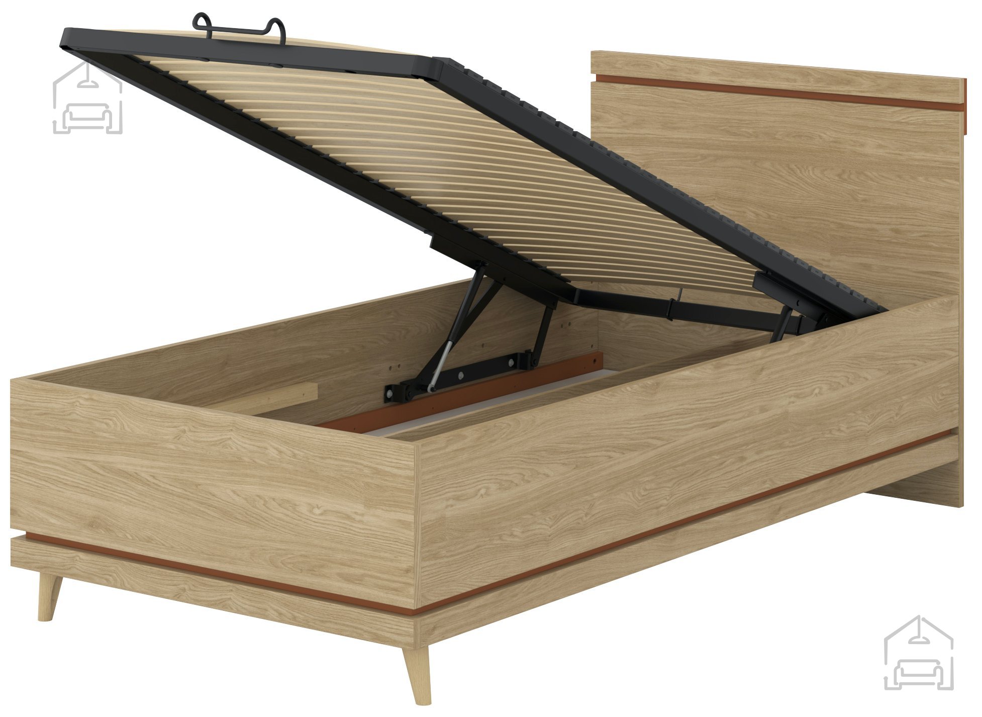 Wenn Sie das perfekte Gleichgewicht zwischen der natürlichen Wärme des Holzes, modernem Design und praktischer Nutzbarkeit suchen, ist das Bett Scandi mit Hebemechanismus die ideale Wahl. Mit seiner Kombination aus geölter Eiche und warmer Ziegelnuance bringt es ein Gefühl von Gemütlichkeit ins Schlafzimmer, während es gleichzeitig die minimalistische Ästhetik beibehält, die für den skandinavischen Stil typisch ist. Dieses Bett ist nicht nur optisch ansprechend, sondern auch äußerst funktional – dank des Hebemechanismus ermöglicht es einen einfachen Zugang zu einer geräumigen Bettzeugschublade, was die ideale Lösung für alle ist, die sich mehr Platz im Schlafzimmer wünschen.