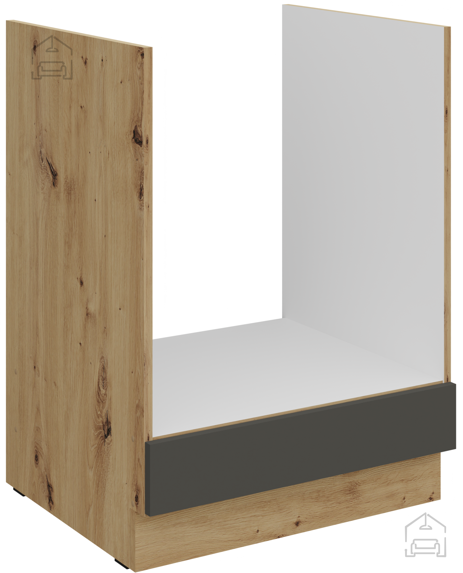 Die Küchenzeile in der Kombination aus grauer Farbe und Artisan-Eiche stellt das perfekte Gleichgewicht zwischen der Wärme von natürlichem Holz und moderner minimalistischer Ästhetik dar. Dieses wunderschön gestaltete Küchenensemble ist für alle gedacht, die Qualität, Praktikabilität und ein elegantes Erscheinungsbild des Raumes schätzen. Mit präziser Verarbeitung aus 16 mm starker laminierter Platte gewährleistet sie eine lange Lebensdauer und Widerstandsfähigkeit gegen tägliche Belastungen, während sie gleichzeitig ein raffiniertes Aussehen bewahrt, das jeden Besucher begeistern wird.