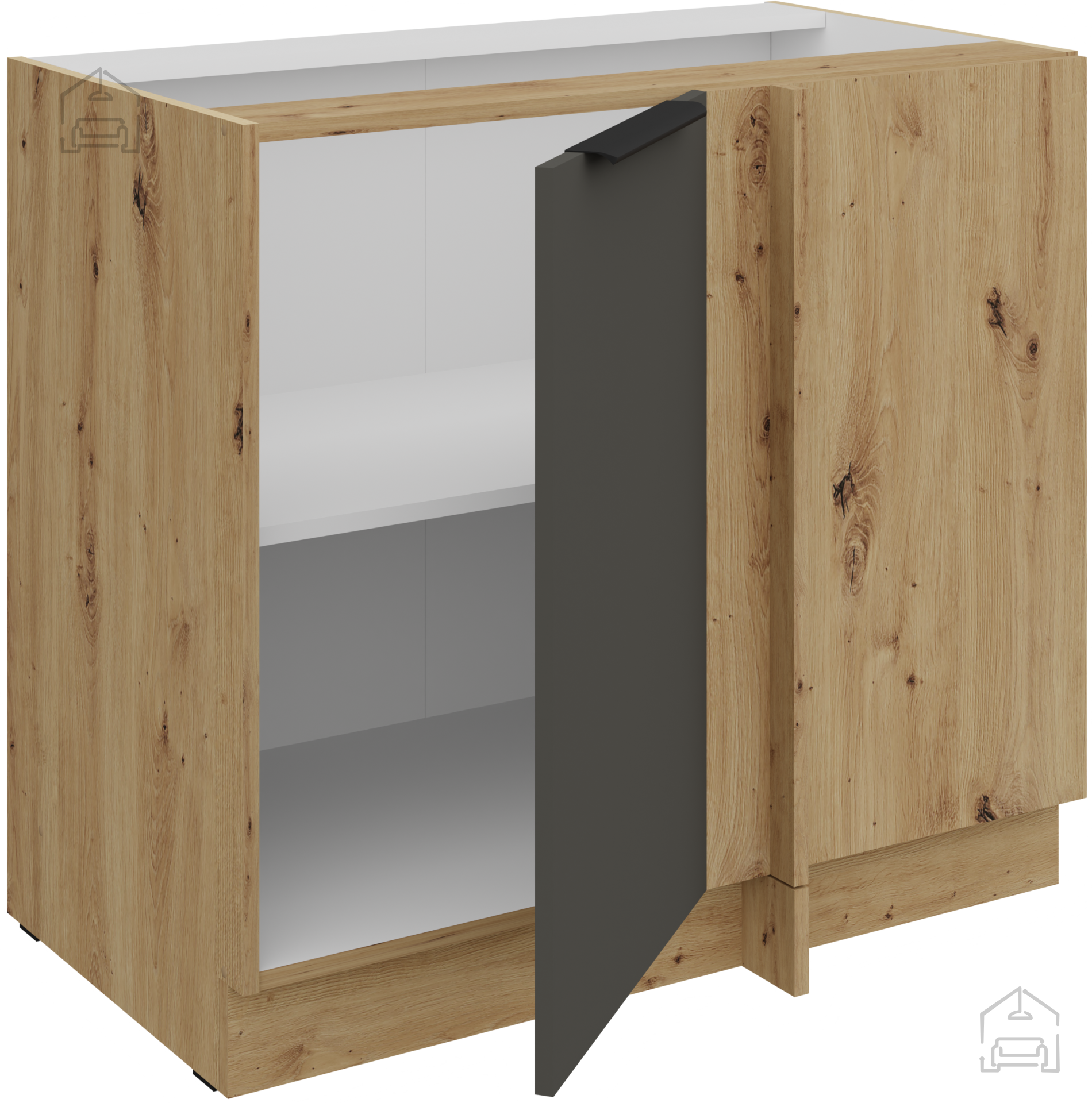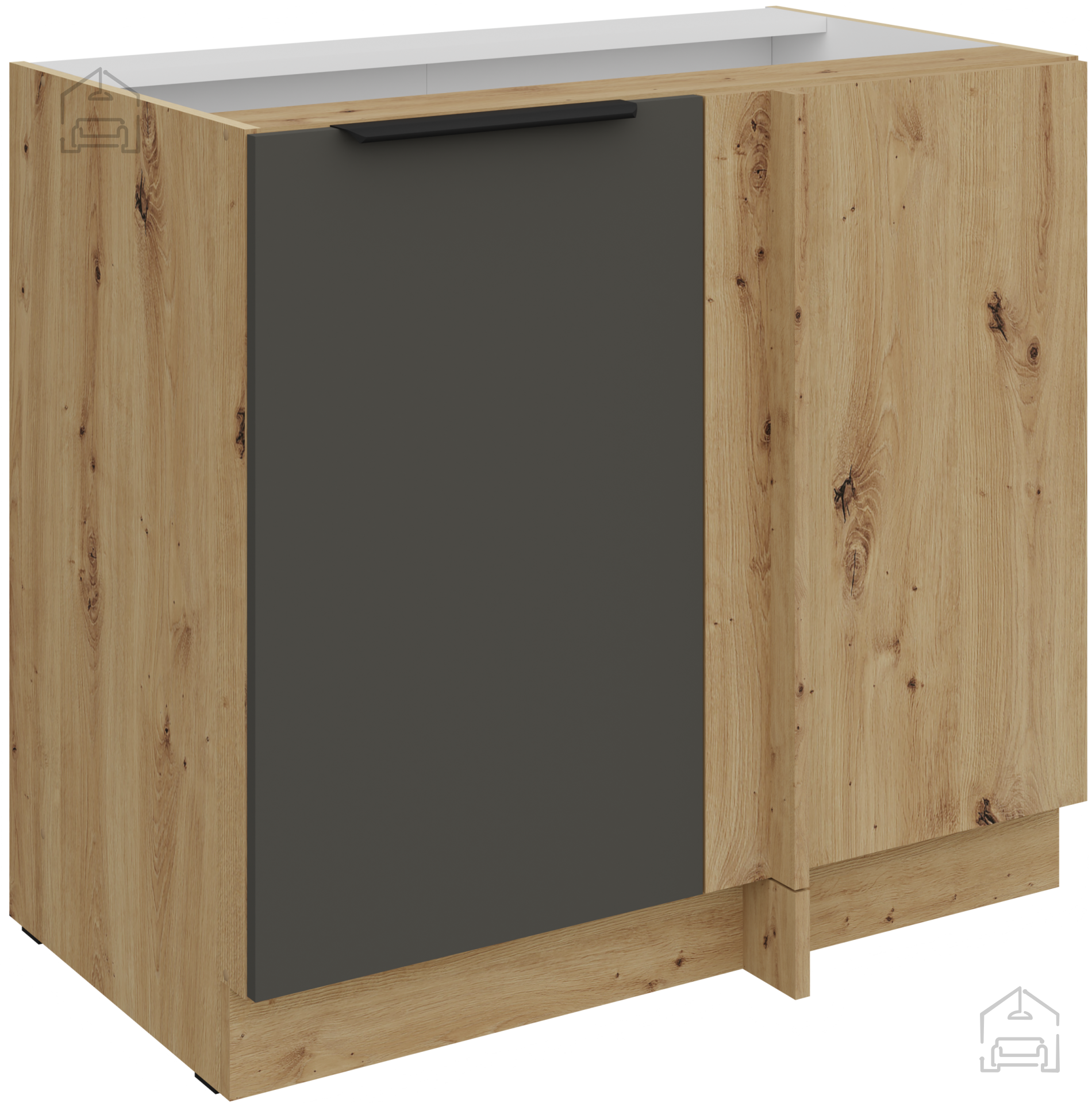 Die Küchenzeile in der Kombination aus grauer Farbe und Artisan-Eiche stellt ein perfektes Gleichgewicht zwischen der Wärme von natürlichem Holz und moderner minimalistischer Ästhetik dar. Dieses wunderschön gestaltete Küchenensemble ist für alle gedacht, die Qualität, Praktikabilität und ein elegantes Erscheinungsbild des Raumes schätzen. Mit präziser Verarbeitung aus laminierter Platte mit einer Stärke von 16 mm gewährleistet sie eine lange Lebensdauer und Widerstandsfähigkeit gegen tägliche Belastungen, während sie gleichzeitig ein raffiniertes Aussehen bewahrt, das jeden Besucher begeistern wird.