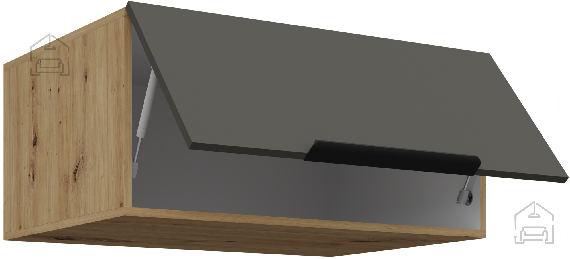 Die Küchenzeile in der Kombination aus grauer Farbe und Artisan-Eiche stellt ein perfektes Gleichgewicht zwischen der Wärme von natürlichem Holz und moderner minimalistischer Ästhetik dar. Dieses wunderschön gestaltete Küchen-Set ist für alle gedacht, die Qualität, Praktikabilität und ein elegantes Erscheinungsbild des Raumes schätzen. Durch die präzise Verarbeitung aus 16 mm starker laminierter Platte wird eine lange Lebensdauer und Widerstandsfähigkeit gegen tägliche Belastungen gewährleistet, während das raffinierte Aussehen erhalten bleibt, das jeden Besucher begeistern wird.
