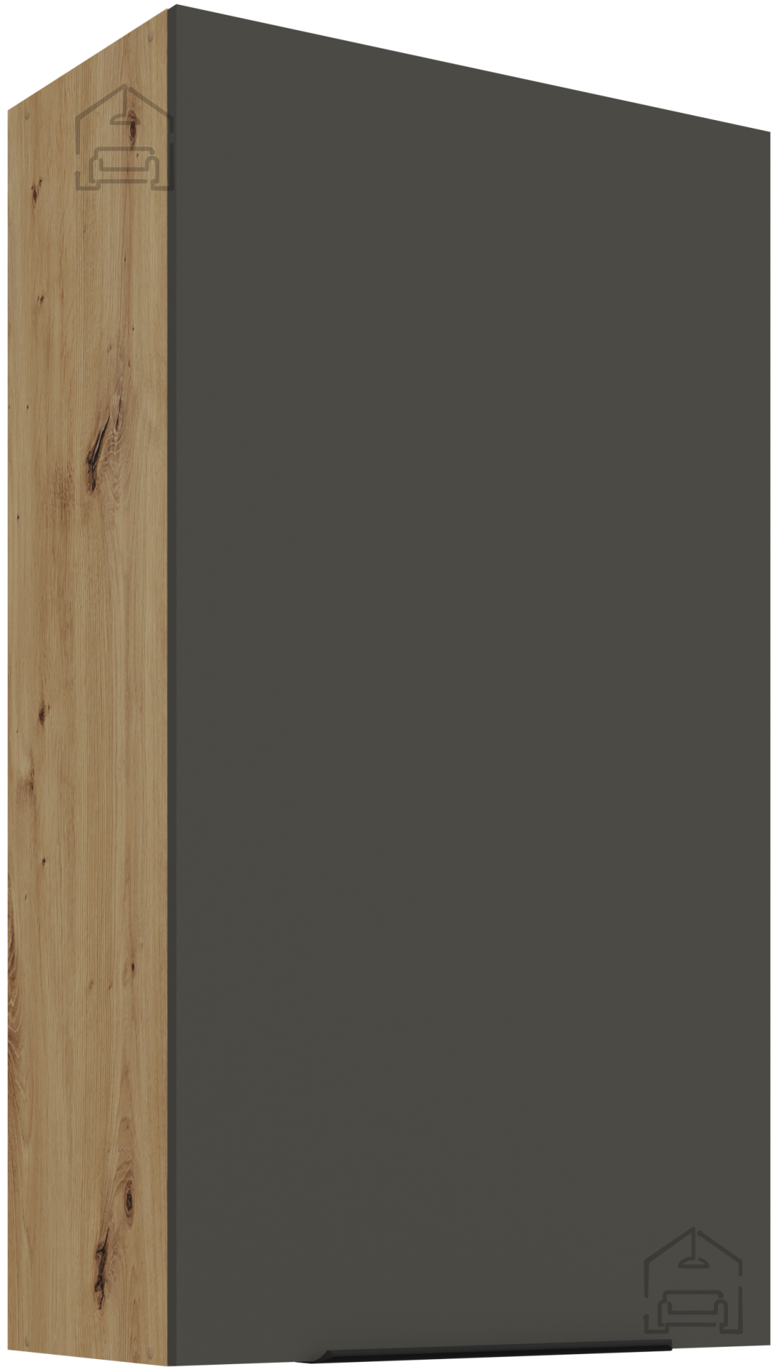 Die Kücheneinrichtung in der Kombination aus grauer Farbe und Artisan-Eiche stellt das perfekte Gleichgewicht zwischen der Wärme von natürlichem Holz und moderner minimalistischer Ästhetik dar. Dieses wunderschön gestaltete Küchen-Set ist für alle gedacht, die Qualität, Praktikabilität und ein elegantes Erscheinungsbild des Raumes schätzen. Durch die präzise Herstellung aus laminierter Platte mit einer Stärke von 16 mm wird eine lange Lebensdauer und Beständigkeit gegenüber alltäglichen Belastungen gewährleistet, während gleichzeitig das raffinierte Aussehen erhalten bleibt, das jeden Besucher begeistern wird.