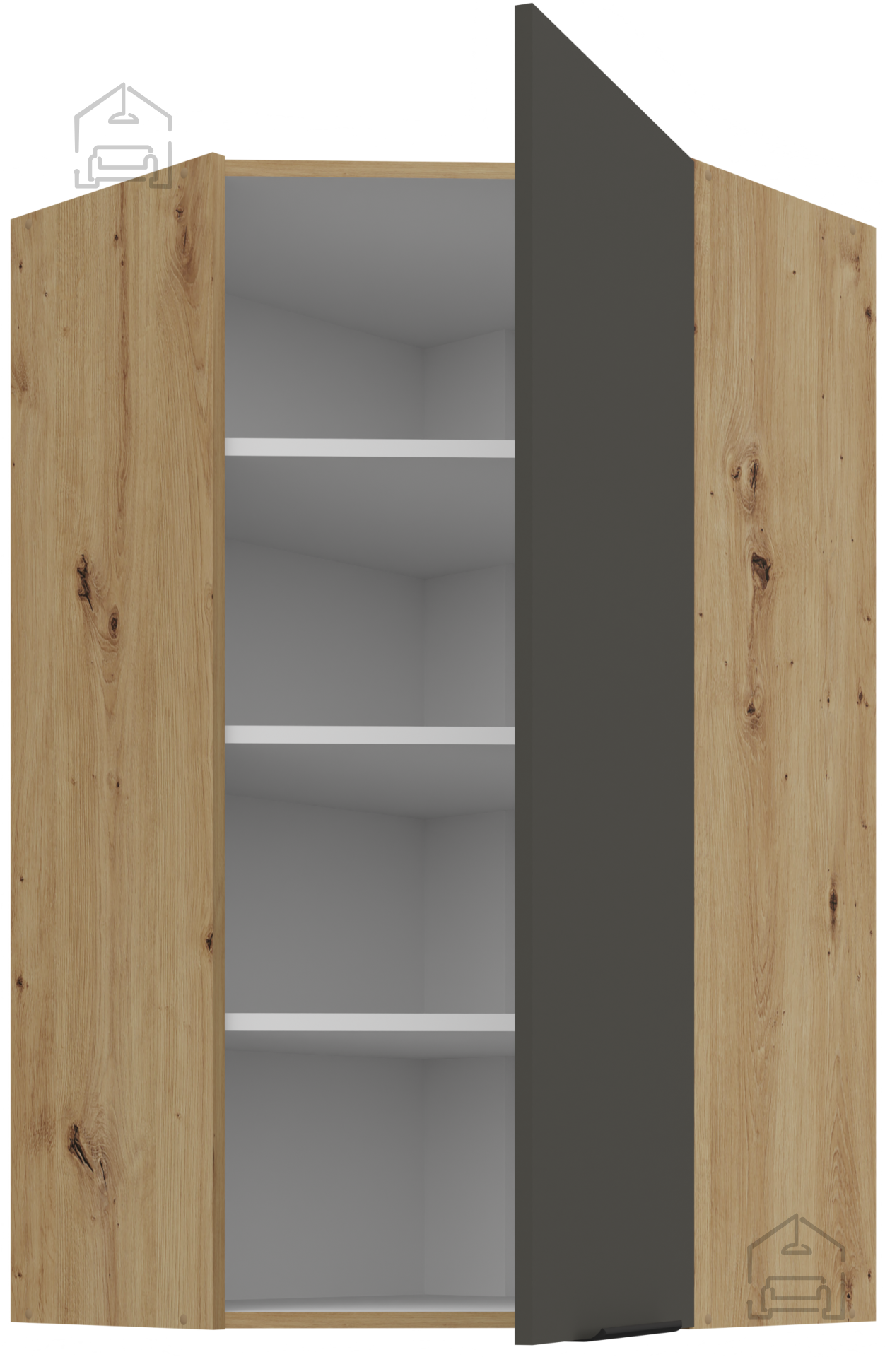 Die Küchenzeile in der Kombination aus grauer Farbe und Artisan-Eiche stellt ein perfektes Gleichgewicht zwischen der Wärme von natürlichem Holz und moderner minimalistischer Ästhetik dar. Dieses wunderschön gestaltete Küchenensemble ist für alle gedacht, die Qualität, Praktikabilität und ein elegantes Erscheinungsbild des Raumes schätzen. Durch die präzise Verarbeitung aus 16 mm starker laminierter Platte garantiert sie eine lange Lebensdauer und Widerstandsfähigkeit gegen tägliche Belastungen, während sie gleichzeitig ein raffiniertes Aussehen bewahrt, das jeden Besucher beeindrucken wird.