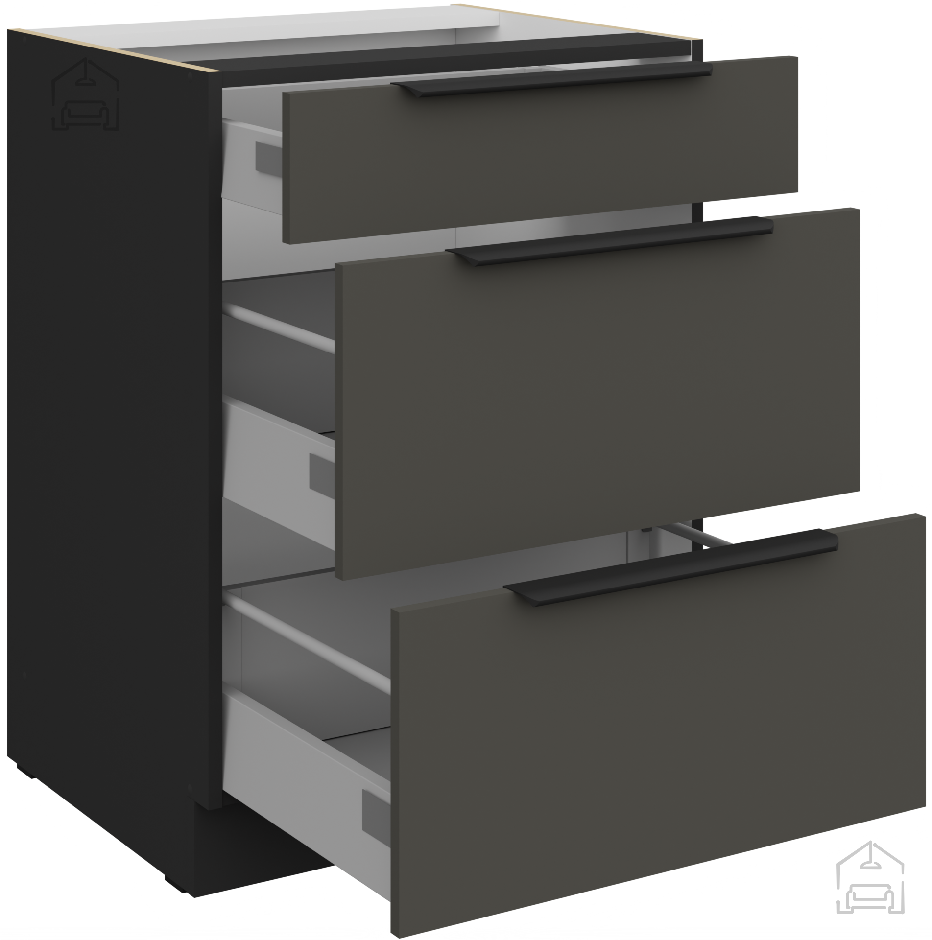Das Küchenset Aria in einer raffinierten grau-schwarzen Farbkombination ist die perfekte Wahl für alle, die ihrem Zuhause einen Hauch modernen Minimalismus und zeitloser Eleganz verleihen möchten. Es ist so konzipiert, dass es Ästhetik, Praktikabilität und hochwertige Verarbeitung vereint – Eigenschaften, die man in einem modernen Zuhause einfach nicht übersehen darf. Es besteht aus einer 16 mm laminierten Platte, was außergewöhnliche Haltbarkeit und eine lange Lebensdauer gewährleistet. Die Oberfläche ist kratz- und feuchtigkeitsbeständig, sodass Ihre Küche lange wie neu bleibt.