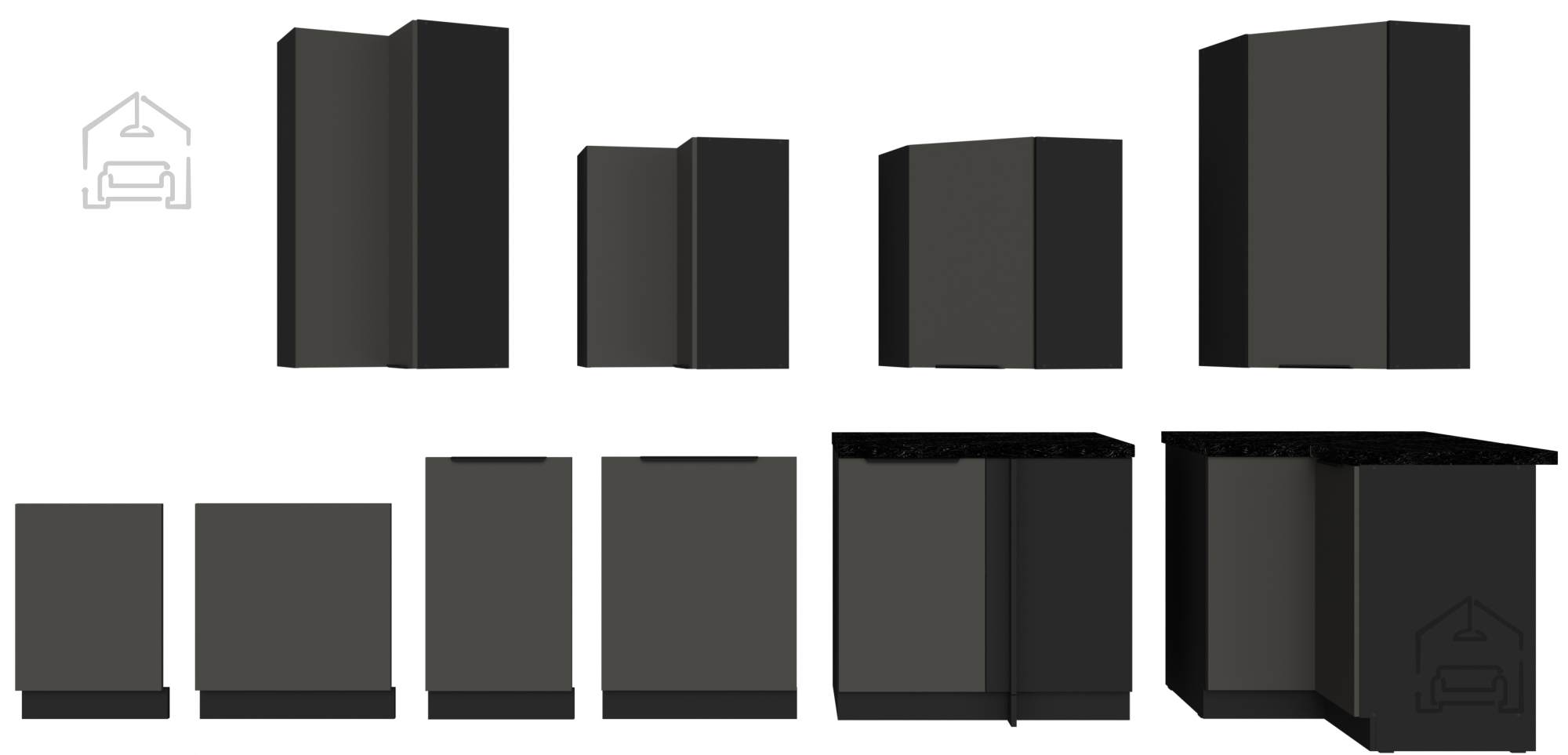Das Küchenensemble Aria in einer raffinierten grau-schwarzen Farbkombination ist die perfekte Wahl für alle, die ihrem Zuhause einen Hauch von modernem Minimalismus und zeitloser Eleganz verleihen möchten. Es ist so konzipiert, dass es Ästhetik, Funktionalität und hochwertige Verarbeitung vereint – Eigenschaften, die in einem modernen Zuhause einfach nicht übersehen werden dürfen. Es besteht aus einer 16 mm laminierten Platte, was außergewöhnliche Haltbarkeit und eine lange Lebensdauer gewährleistet. Die Oberfläche ist kratz- und feuchtigkeitsbeständig, sodass Ihre Küche lange wie neu bleibt.