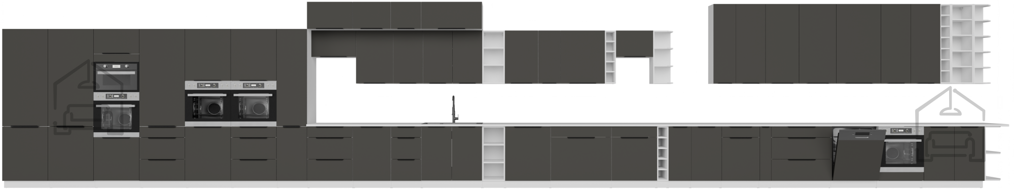 Das Küchenensemble Aria ist modular aufgebaut, was bedeutet, dass es an verschiedene räumliche Einschränkungen und Bedürfnisse angepasst werden kann. Obwohl die Grundausführung keinen ausziehbaren Tisch enthält, ermöglicht sie die Kombination mit anderen Möbelstücken im gleichen Stil. Grau und Weiß schaffen zusammen ein helles und geräumiges Gefühl, weshalb das Ensemble besonders für kleinere Küchen oder offene Wohnräume geeignet ist, in denen Licht und Raumgefühl eine zentrale Rolle spielen.