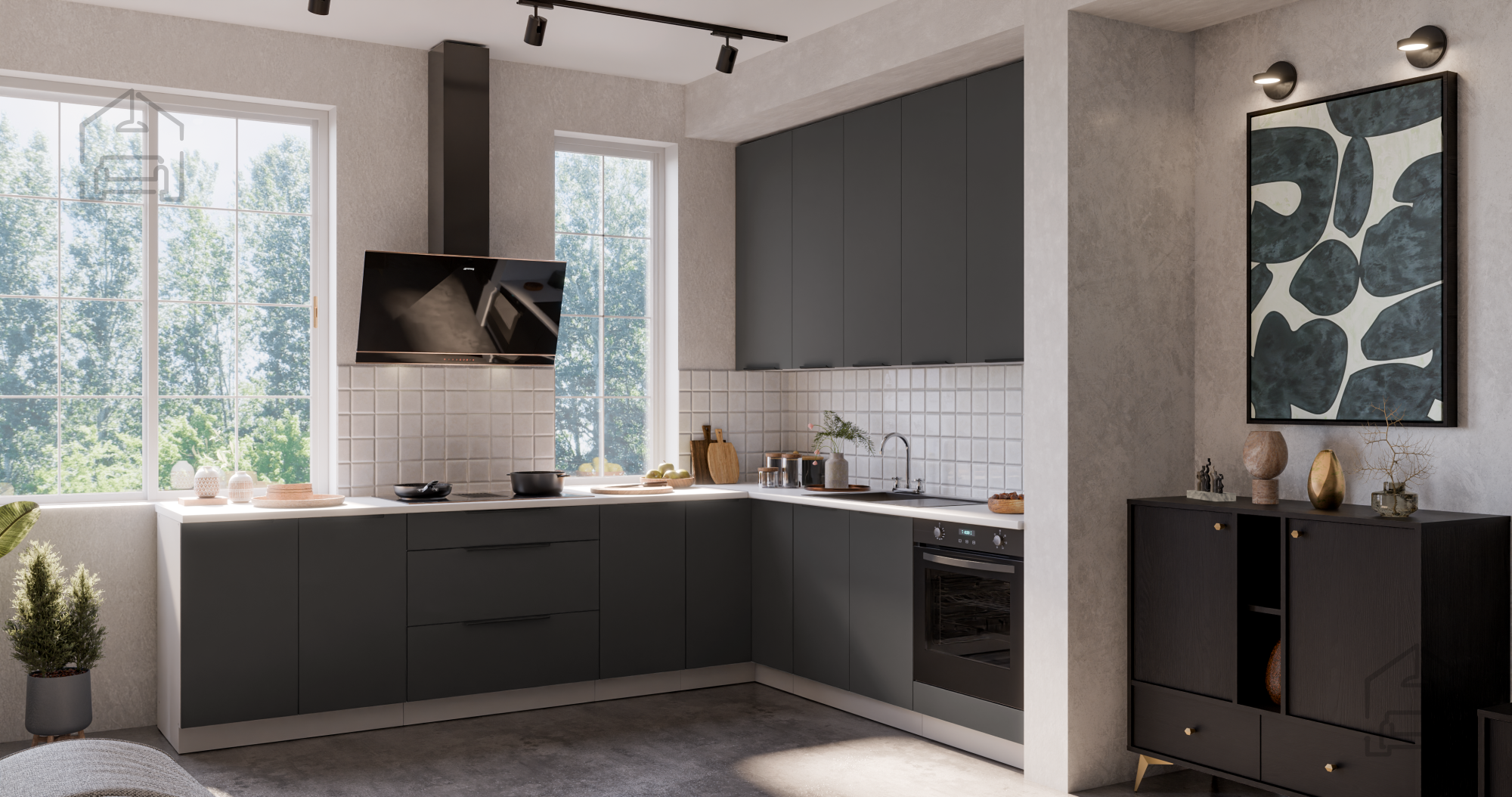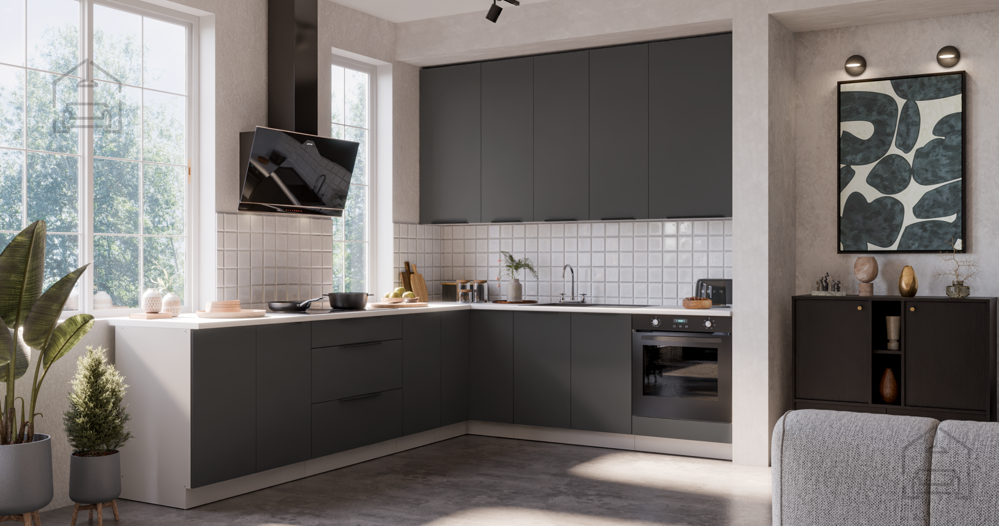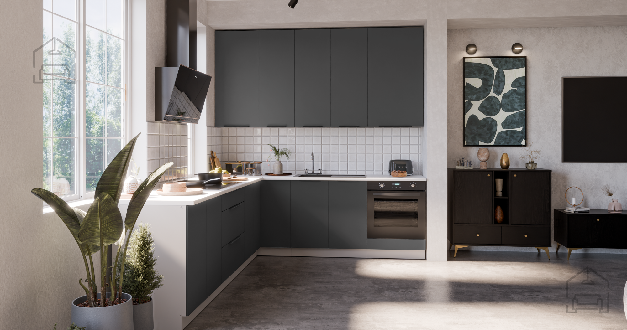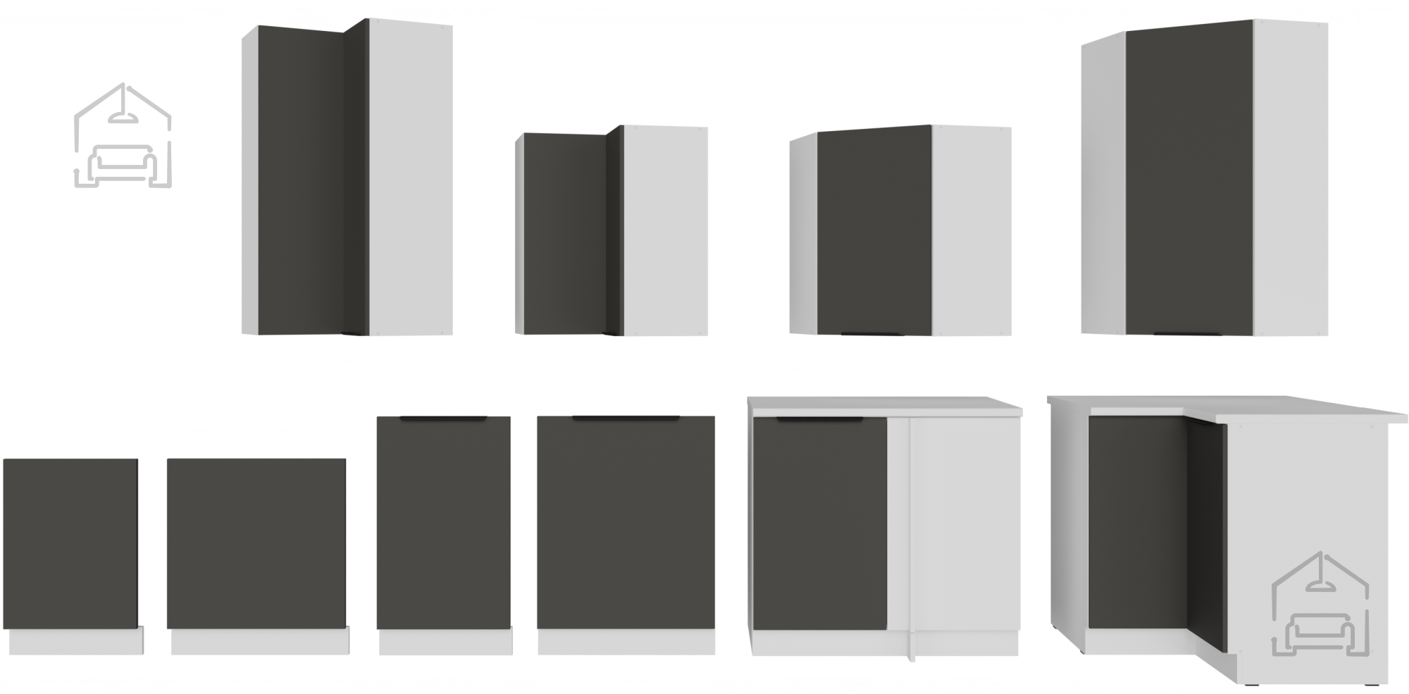 Das Küchenensemble Aria in Grau und Weiß stellt ein außergewöhnliches Gleichgewicht zwischen Praktikabilität und modernem Design dar. Es ist für Benutzer konzipiert, die sich einen ordentlichen, hellen und visuell ausgewogenen Raum wünschen, in dem die Zubereitung von Speisen zu einem angenehmen Erlebnis wird. Die Kombination neutraler Töne von Grau und Weiß ermöglicht eine einfache Integration in verschiedene Einrichtungsstile – von minimalistisch über skandinavisch bis hin zu klassisch elegant. Die Oberflächen bestehen aus einer hochwertigen laminierten Platte mit einer Stärke von 16 mm, was eine lange Lebensdauer und einfache Pflege gewährleistet.