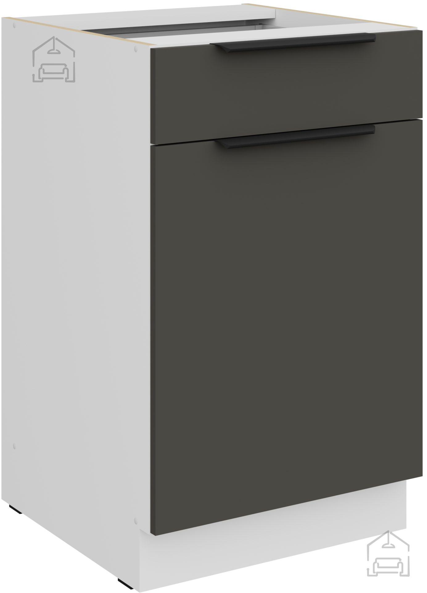 Der Korpus und die Fronten der Küchenzeile Aria bestehen aus einer laminierten Platte (Spanplatte) mit einer Stärke von 16 mm, die für ihre Kratz-, Feuchtigkeits- und Hitzebeständigkeit bekannt ist. Die Oberfläche lässt sich leicht mit einem weichen Tuch und einem milden Reinigungsmittel reinigen, wodurch das frische Aussehen auch nach Jahren der Nutzung erhalten bleibt.