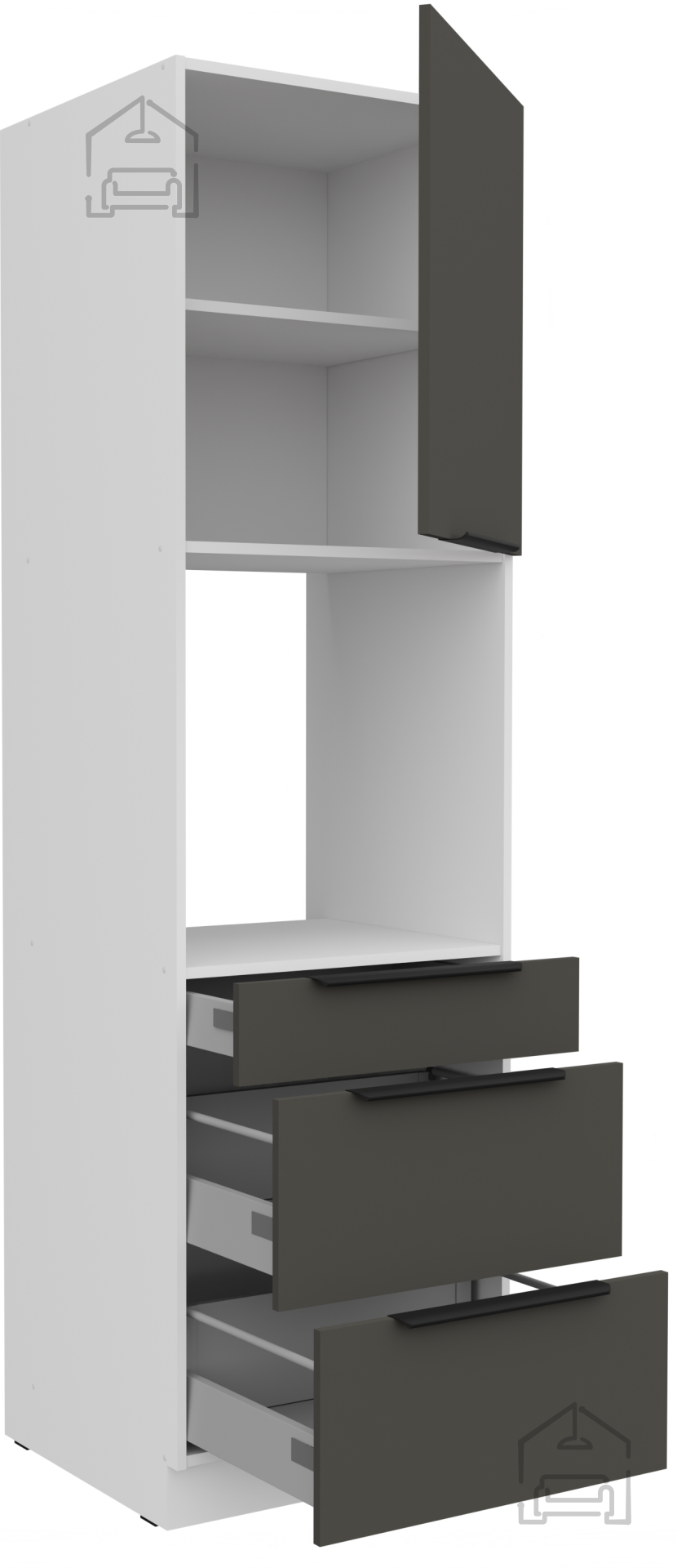 Das Küchenensemble Aria in Grau und Weiß stellt ein außergewöhnliches Gleichgewicht zwischen Praktikabilität und modernem Design dar. Es ist für Nutzer konzipiert, die sich einen geordneten, hellen und visuell ausgewogenen Raum wünschen, in dem die Zubereitung von Speisen zu einem angenehmen Erlebnis wird. Die Kombination aus neutralen Grautönen und Weiß ermöglicht eine einfache Integration in verschiedene Einrichtungsstile – von minimalistisch bis skandinavisch oder klassisch elegant. Die Oberflächen bestehen aus einer hochwertigen laminierten Platte mit einer Stärke von 16 mm, was eine lange Lebensdauer und einfache Pflege gewährleistet.