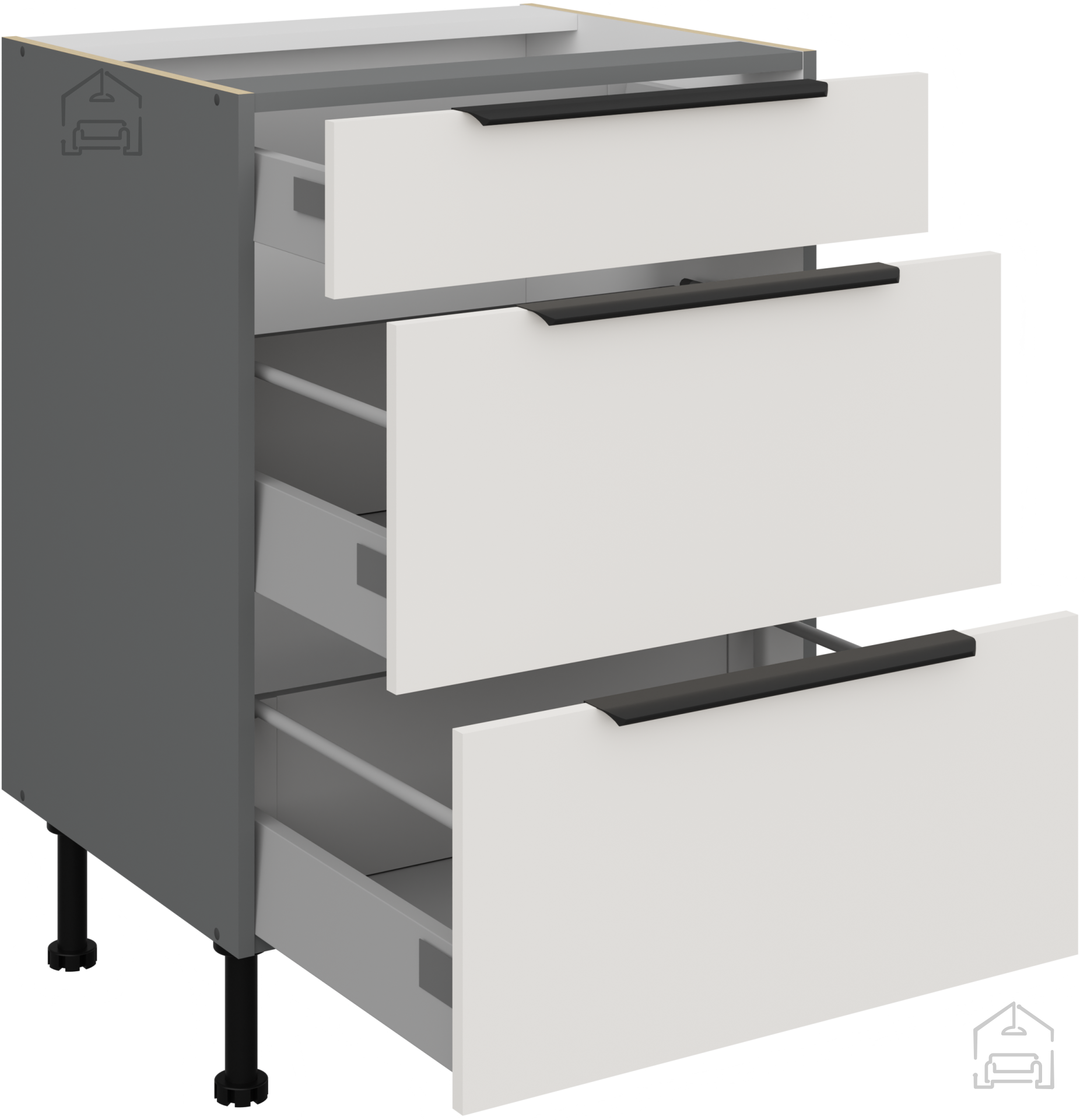 Das Küchenensemble Aria des polnischen Herstellers Stolarz-Lempert vereint minimalistische Ästhetik, Funktionalität und Verarbeitungsqualität, die man von einer modernen Küche erwartet. Es besteht aus einer strapazierfähigen laminierten Platte mit einer Stärke von 16 mm, die eine lange Lebensdauer, Feuchtigkeitsbeständigkeit und einfache Reinigung der Oberflächen gewährleistet. Die Kombination aus Weiß und Anthrazit schafft ein modernes und zugleich warmes Erscheinungsbild, das sich harmonisch mit verschiedenen Einrichtungsstilen – von modern bis klassisch – kombinieren lässt.