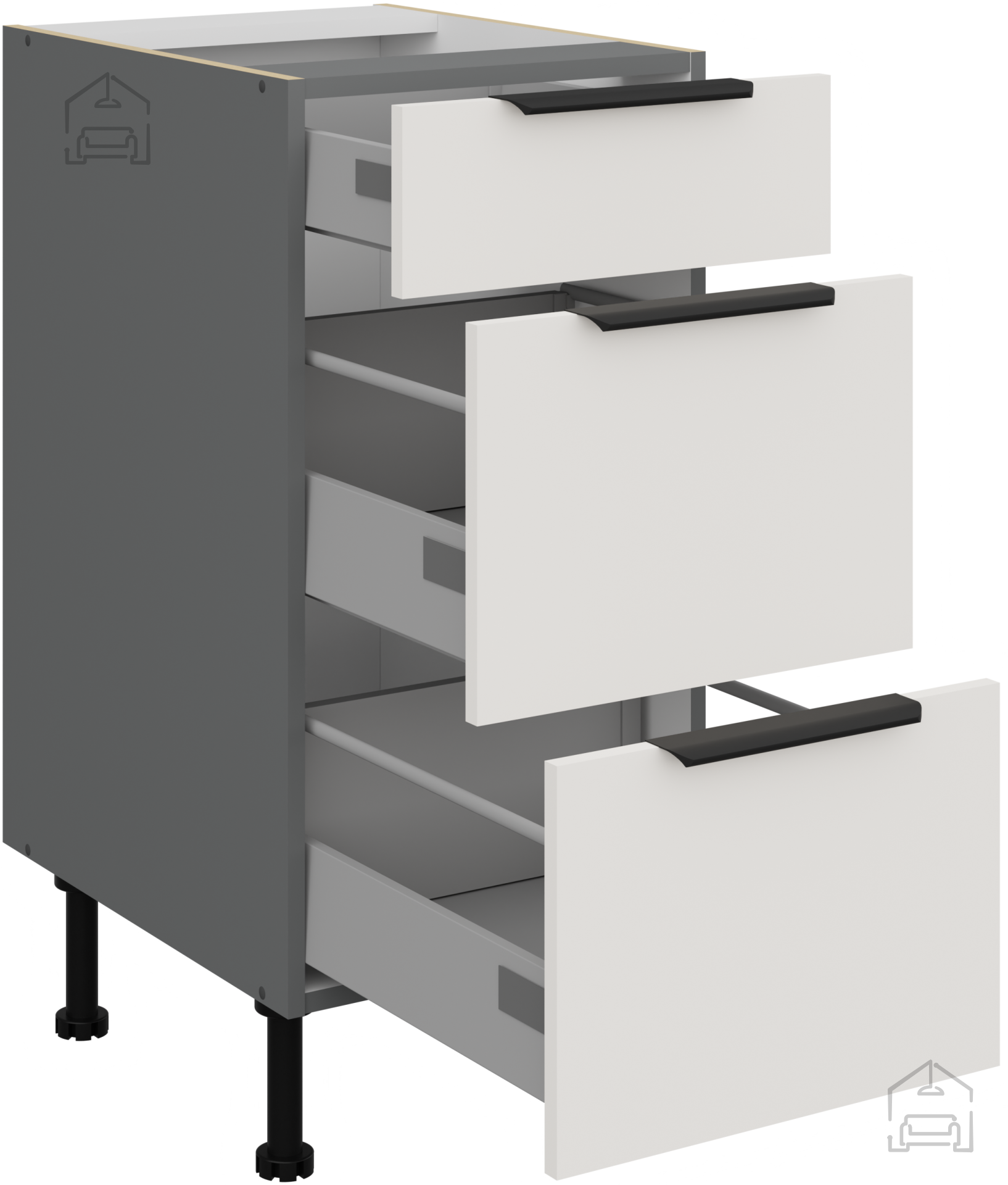 Aria ist so konzipiert, dass sie ausreichend Stauraum und Organisation für Küchenutensilien bietet. Das modulare System ermöglicht die Anpassung der Anordnung der Elemente an die Raumgröße und die Position der Anschlüsse. Dank der klaren Liniengeometrie und zeitlosen Farben lässt sich die Küche leicht mit Accessoires wie Metallelementen, Holzdetaile oder farbigen Akzenten kombinieren, die der Küche eine persönliche Note verleihen. Benutzer werden auch die einfache Reinigung schätzen – glatte laminierte Oberflächen nehmen keine Flecken auf und können mit einem feuchten Tuch abgewischt werden, was Zeit und Mühe spart.