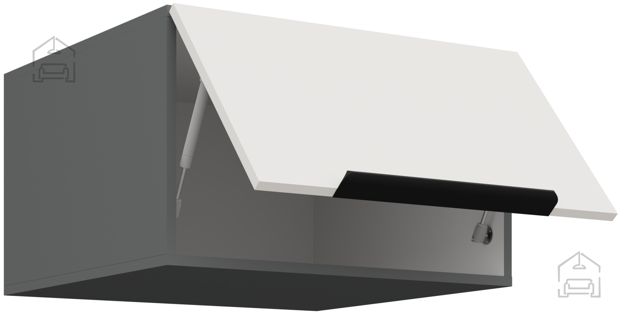 Die Farbkombination weiß/anthrazit bringt visuelles Gleichgewicht – die weiße Farbe vergrößert optisch den Raum und füllt ihn mit Licht, während anthrazitfarbene Töne Tiefe und Eleganz verleihen. Ein solches Farbschema ermöglicht zahlreiche Kombinationen mit verschiedenen Dekoren, Bodenbelägen und Haushaltsgeräten, sodass sich Aria leicht sowohl an helle als auch an dunklere Küchenräume anpasst. Die Arbeitsplatte im Design 38-6499 Marmor Roma imitiert Naturstein, was der Küche einen Hauch von Luxus und bleibendem Wert verleiht. Neben der ästhetischen Funktion bietet sie auch außergewöhnliche Kratz- und Hitzebeständigkeit, was im täglichen Gebrauch entscheidend ist.