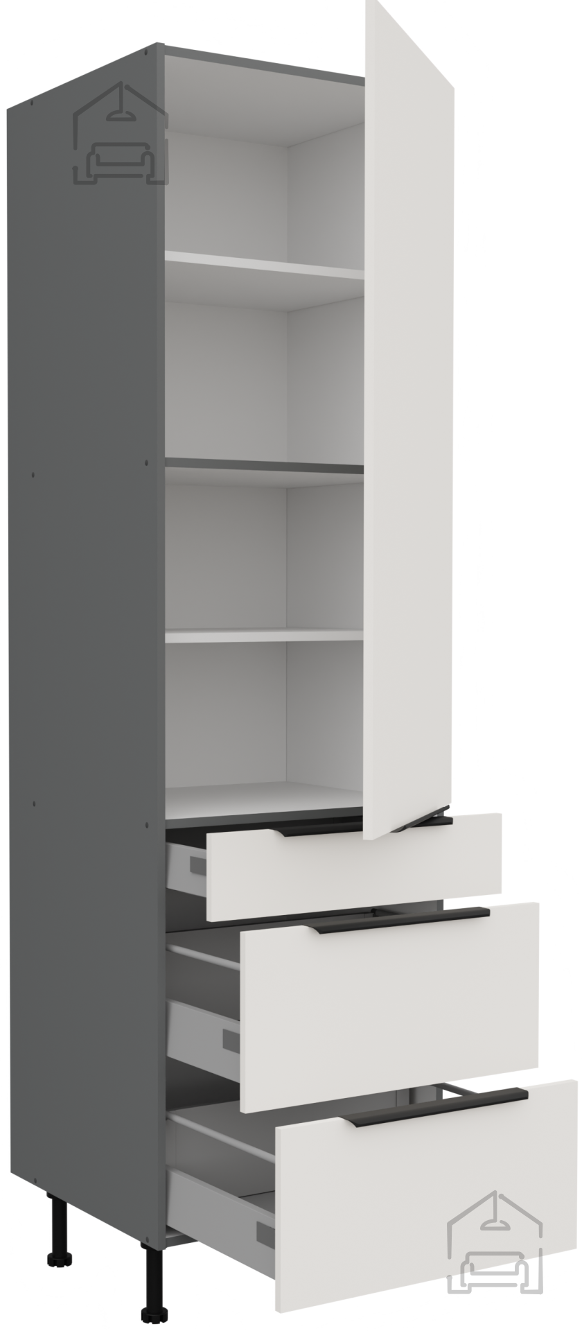 Der Korpus und die Fronten des Küchenensembles Aria bestehen aus hochwertiger Spanplatte, die für ihre Stabilität und einfache Pflege bekannt ist. Die Oberflächen sind vor Staub, Hitze und Feuchtigkeit geschützt, was eine langfristige Nutzung ohne sichtbaren Verschleiß ermöglicht. Die laminierte Platte mit einer Stärke von 16 mm gewährleistet Festigkeit und behält dabei die Leichtigkeit, die die Montage und das Verschieben der Elemente erleichtert. Im Set finden Sie auch sorgfältig ausgewählte Details wie die Griffe Edge UA-HEXA in einer Kombination aus Schwarz und Aluminium, die das moderne Erscheinungsbild ergänzen und ergonomischen Komfort im täglichen Gebrauch bieten.