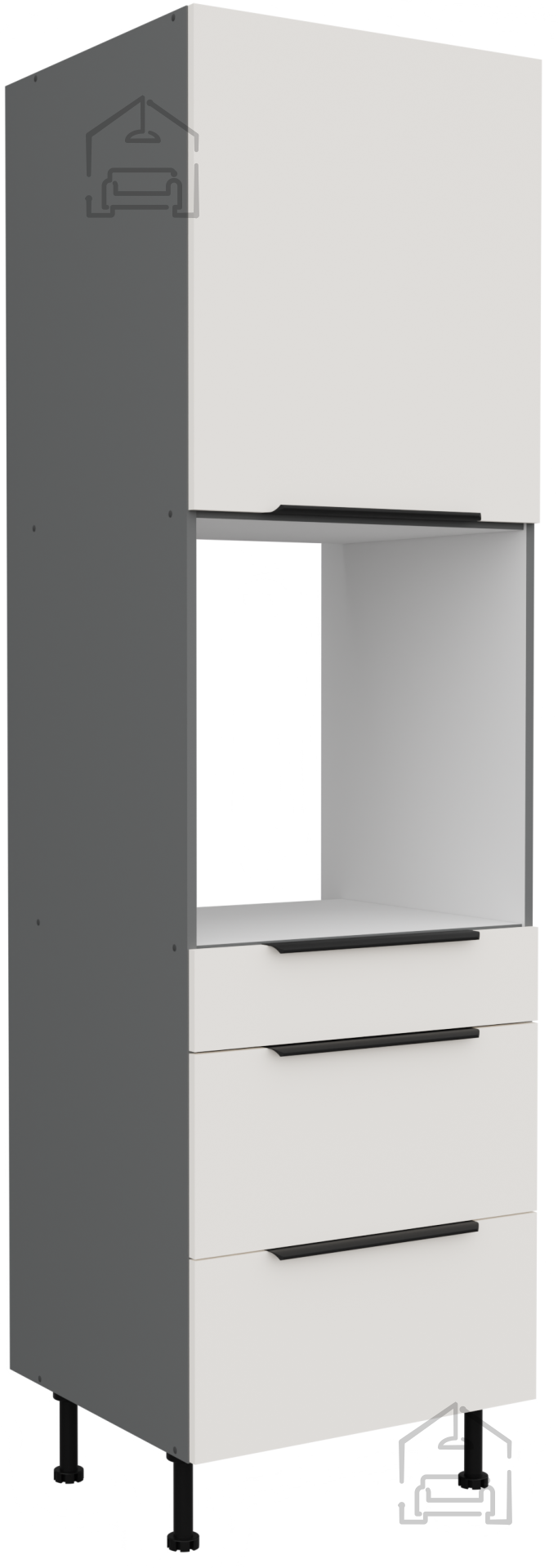 Das Gehäuse und die Fronten des Küchenensembles Aria sind aus hochwertigem Spanplattenmaterial gefertigt, das für seine Stabilität und einfache Pflege bekannt ist. Die Oberflächen sind gegen Staub, Hitze und Feuchtigkeit geschützt, was eine langfristige Nutzung ohne sichtbare Abnutzung ermöglicht. Die laminierte Platte mit einer Stärke von 16 mm gewährleistet Festigkeit, behält dabei jedoch Leichtigkeit, was die Montage und das Umstellen der Elemente erleichtert. Im Set werden Sie auch sorgfältig ausgewählte Details bemerken, wie Griffe Edge UA-HEXA aus einer Kombination von Schwarz und Aluminiumfarben, die das moderne Erscheinungsbild ergänzen und ergonomischen Komfort im täglichen Gebrauch bieten.