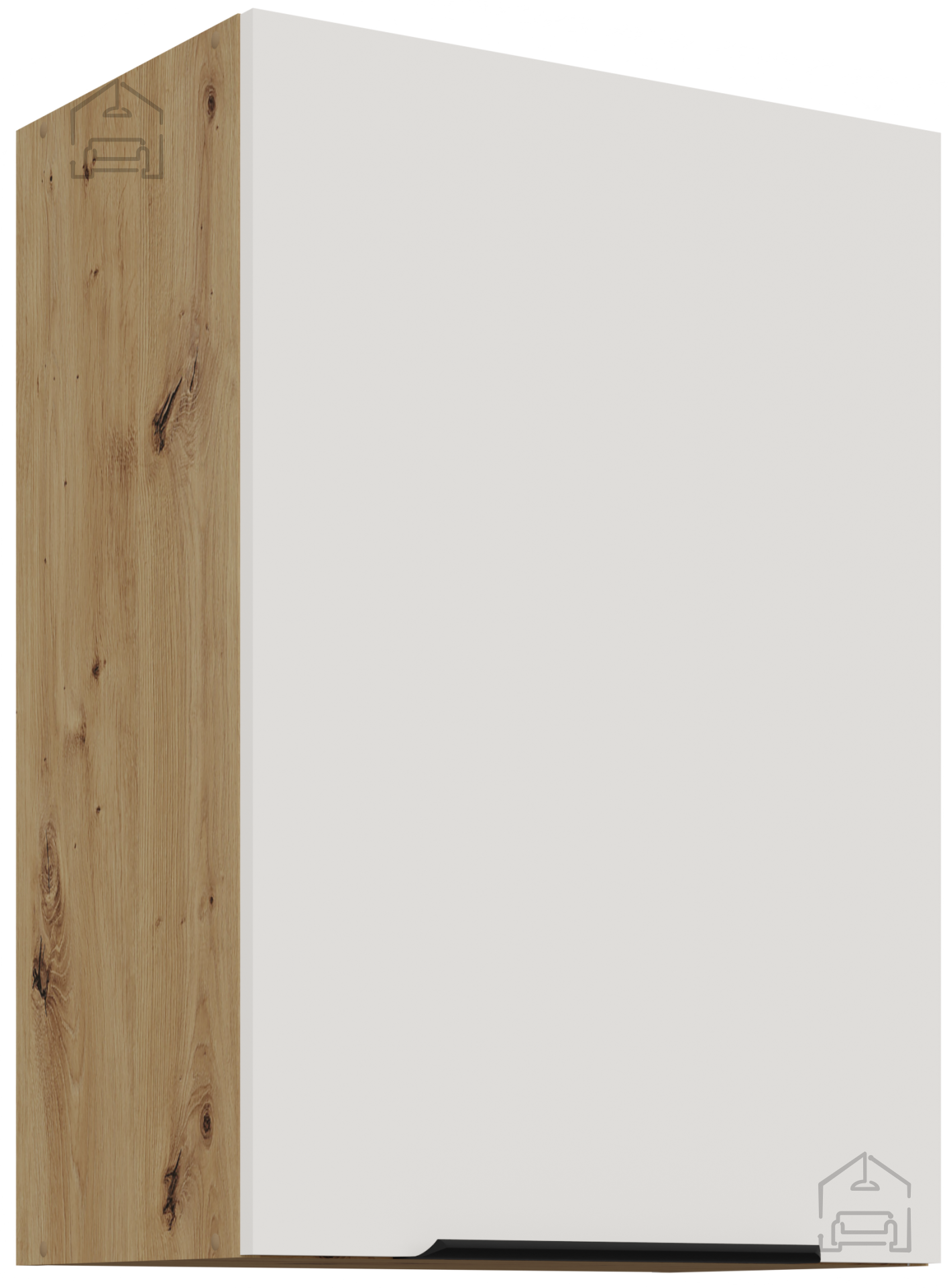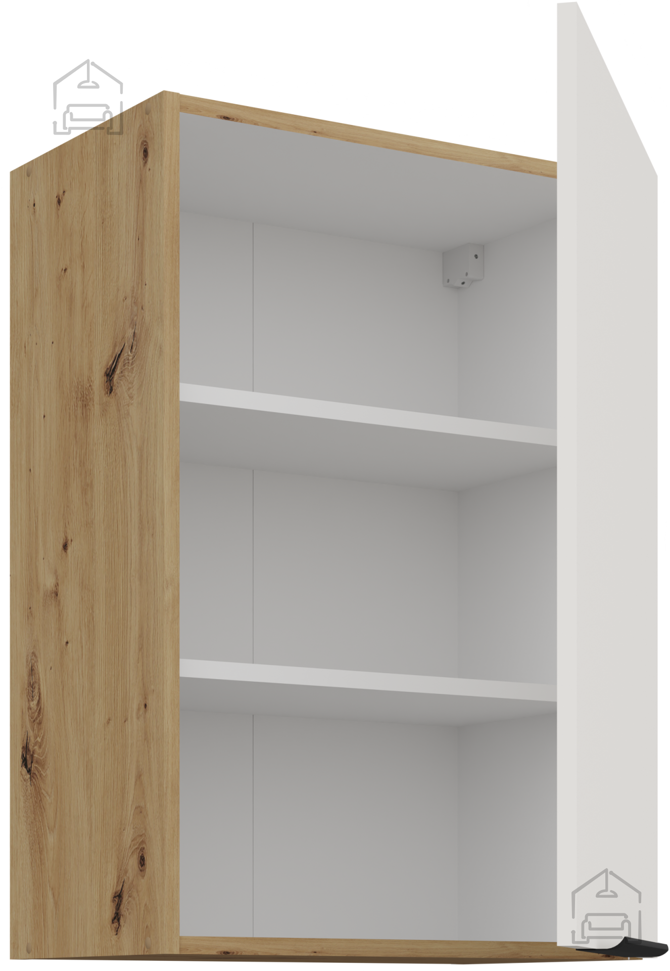 Die Linie Aria zeichnet sich durch klare Linien und zeitloses Design aus. Die Kombination aus heller weißer Oberfläche und natürlicher Optik der Eiche Artisan schafft einen ausgewogenen visuellen Eindruck, der den Raum optisch vergrößert und ihm Wärme verleiht. Eine solche Farbkombination passt perfekt zu verschiedenen Bodenbelägen, Wänden und dekorativen Accessoires, sodass das Set sowohl für kleinere als auch größere Küchenräume geeignet ist.