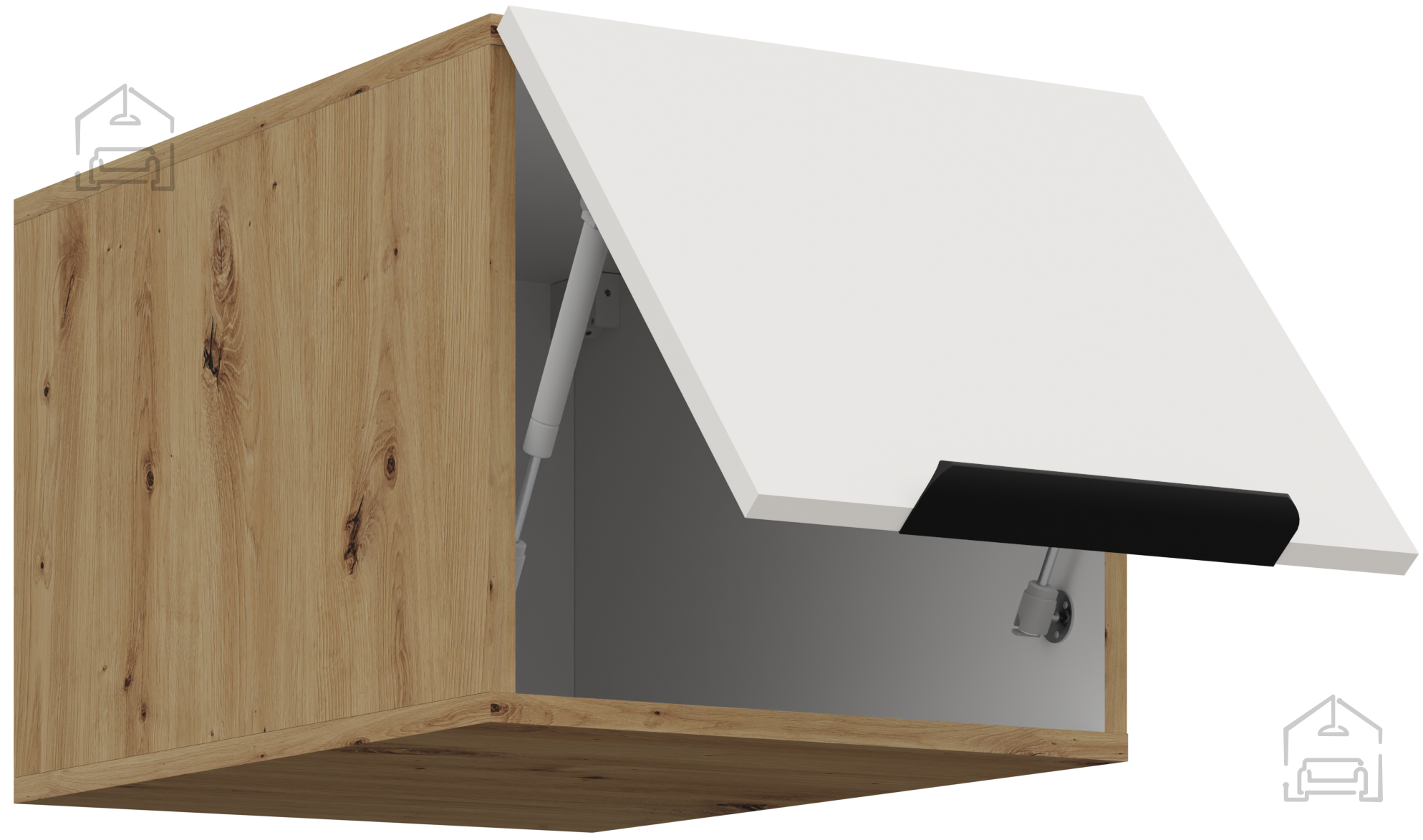 Die Linie Aria zeichnet sich durch klare Linien und zeitloses Design aus. Die Kombination der hellweißen Oberfläche mit dem natürlichen Look von Artisan-Eiche schafft einen ausgewogenen visuellen Eindruck, der den Raum optisch vergrößert und ihm Wärme verleiht. Diese Farbkombination passt hervorragend zu verschiedenen Bodenbelägen, Wänden und dekorativen Accessoires, weshalb das Set sowohl für kleinere als auch größere Küchenräume geeignet ist.