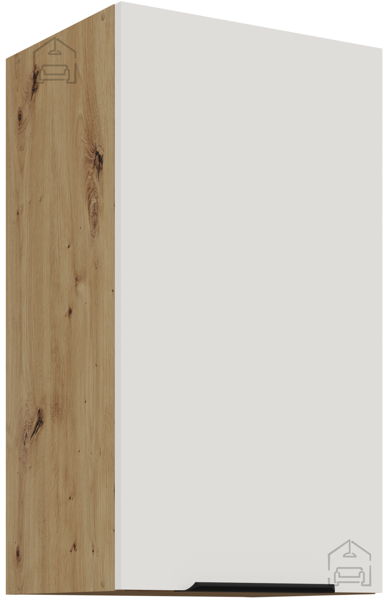 Die Linie Aria zeichnet sich durch klare Linien und zeitloses Design aus. Die Kombination der hellen weißen Oberfläche mit dem natürlichen Aussehen der Artisan Eiche schafft einen ausgewogenen visuellen Eindruck, der den Raum optisch vergrößert und ihm Wärme verleiht. Diese Farbkombination passt hervorragend zu verschiedenen Bodenbelägen, Wänden und dekorativen Accessoires, weshalb das Set sowohl für kleinere als auch größere Küchenräume geeignet ist.