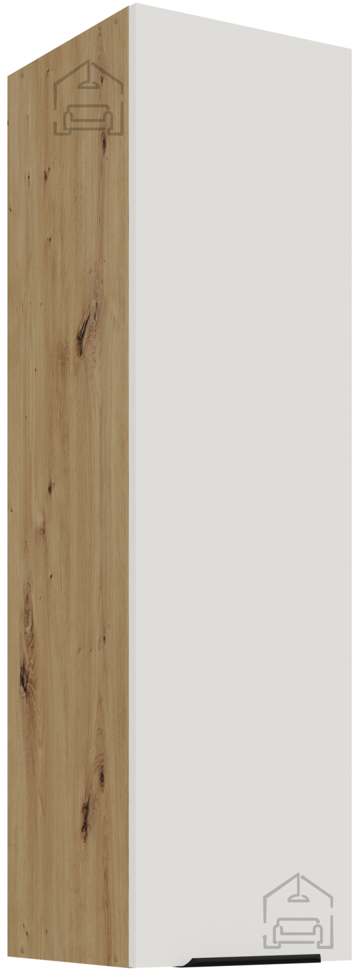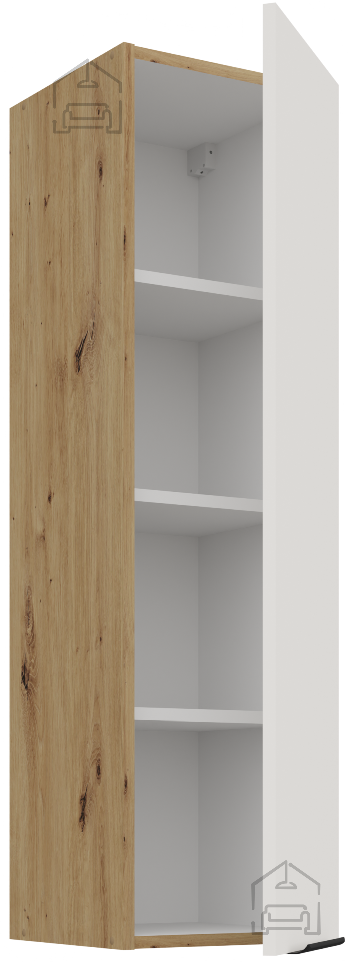 Die Küchenzeile Aria in der Farbkombination Weiß / Eiche Artisan stellt eine moderne und funktionale Lösung für jede Küche dar. Sie ist so konzipiert, dass sie die Ästhetik warmer Holztöne mit zeitlosem Weiß verbindet, was eine einfache Integration in verschiedene Einrichtungsstile ermöglicht – von minimalistischen bis hin zu klassischen Umgebungen. Hergestellt aus einer hochwertigen laminierten Platte mit einer Stärke von 16 mm, die Festigkeit, Langlebigkeit und einfache Reinigung gewährleistet.