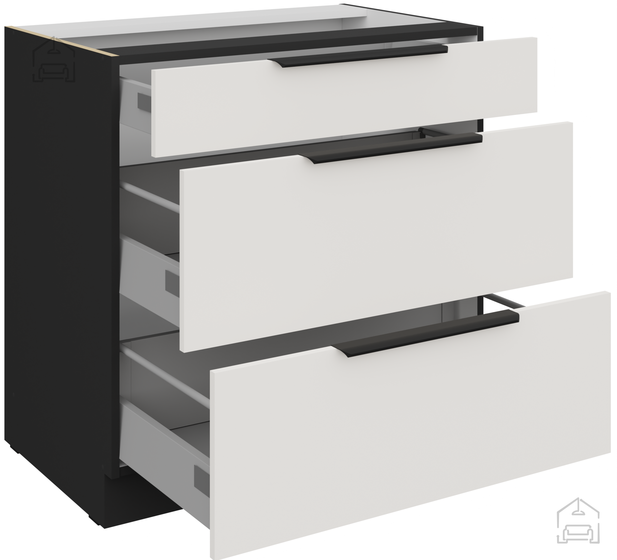 Das Küchenensemble Aria in einer eleganten Kombination aus Weiß und Schwarz vereint Funktionalität, moderne Ästhetik und hochwertige Verarbeitung. Es ist so konzipiert, dass es zu verschiedenen Einrichtungsstilen passt – von minimalistischen bis hin zu klassischen Küchen. Das Hauptmaterial, eine 16 mm starke laminierte Platte, sorgt für Festigkeit, Stabilität und eine lange Lebensdauer, ermöglicht aber gleichzeitig eine einfache Reinigung und Pflege. Dieses Küchenensemble ist das Ergebnis präziser Herstellung in der Fabrik Stolarz-Lempert in Polen, wo der Schwerpunkt auf Qualität und Details liegt.