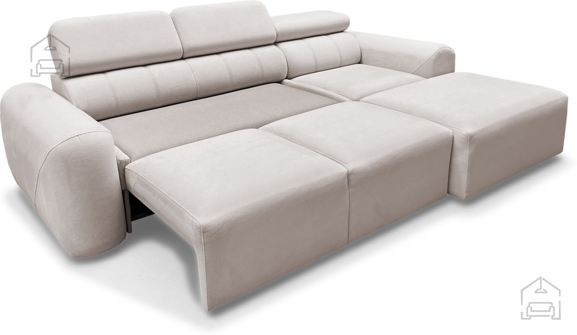 Volare I bietet eine großzügige Sitzfläche und eine bequeme Liegefläche für zwei Personen. Mit Hilfe des Dolphin-Mechanismus lässt sich der Sitz einfach herausziehen, wodurch eine flache Liegefläche mit einer Breite von 130 cm entsteht. Der eingebaute Bettkasten ermöglicht die praktische Aufbewahrung von Decken, Kissen oder Bettwäsche und trägt so zur Ordnung im Raum bei.