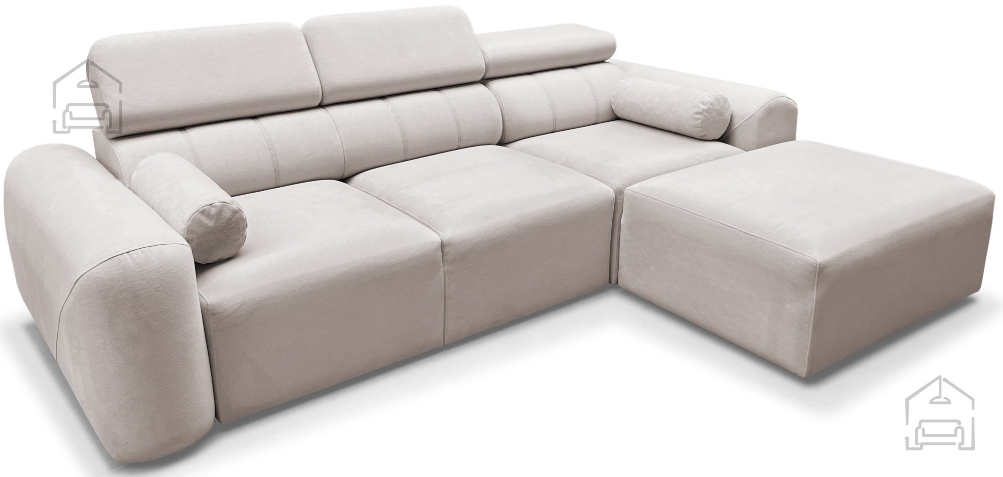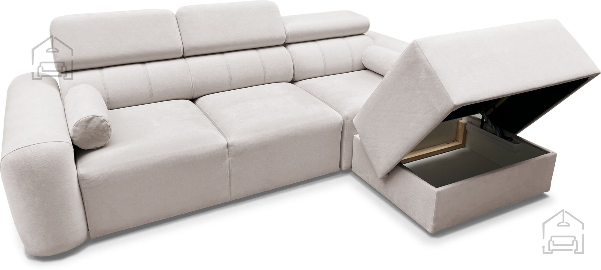 Die Ecksofa-Garnitur Volare I ist die ideale Lösung für moderne Wohnungen, in denen das Gleichgewicht zwischen Ästhetik und Funktionalität wichtig ist. Ihr Erscheinungsbild wird durch verstellbare Kopfstützen ergänzt, die zusätzlichen Komfort beim Fernsehen oder Lesen bieten. Dank der durchdachten Konstruktion und hochwertigen Materialien ist dies ein Möbelstück, das viele Jahre lang dienen wird.