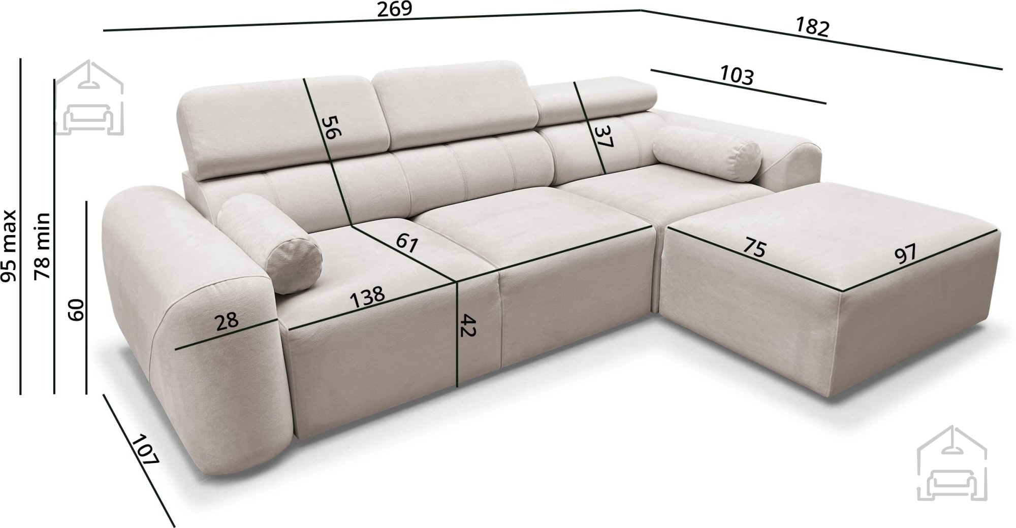 Volare I ist so konzipiert, dass sie sich dem Raum anpasst. Bei der Bestellung muss angegeben werden, ob Sie eine linke oder rechte Ecke wünschen, wobei die Seite aus der Sicht der vor der Garnitur stehenden Person bestimmt wird. Eine solche Flexibilität ermöglicht die optimale Raumausnutzung in jedem Zuhause.