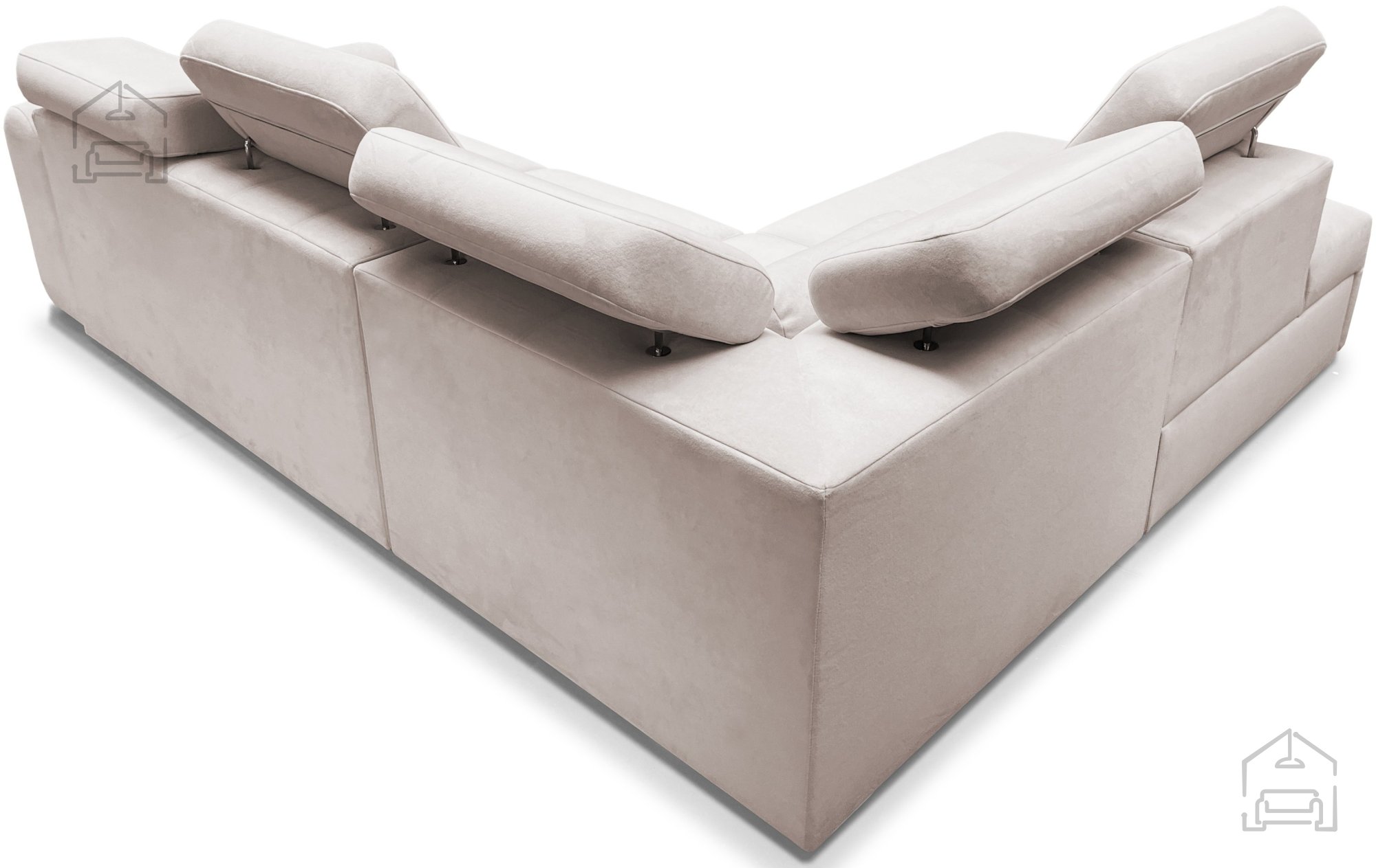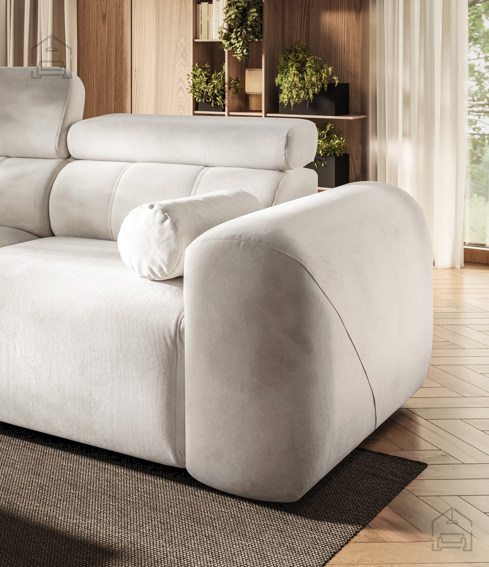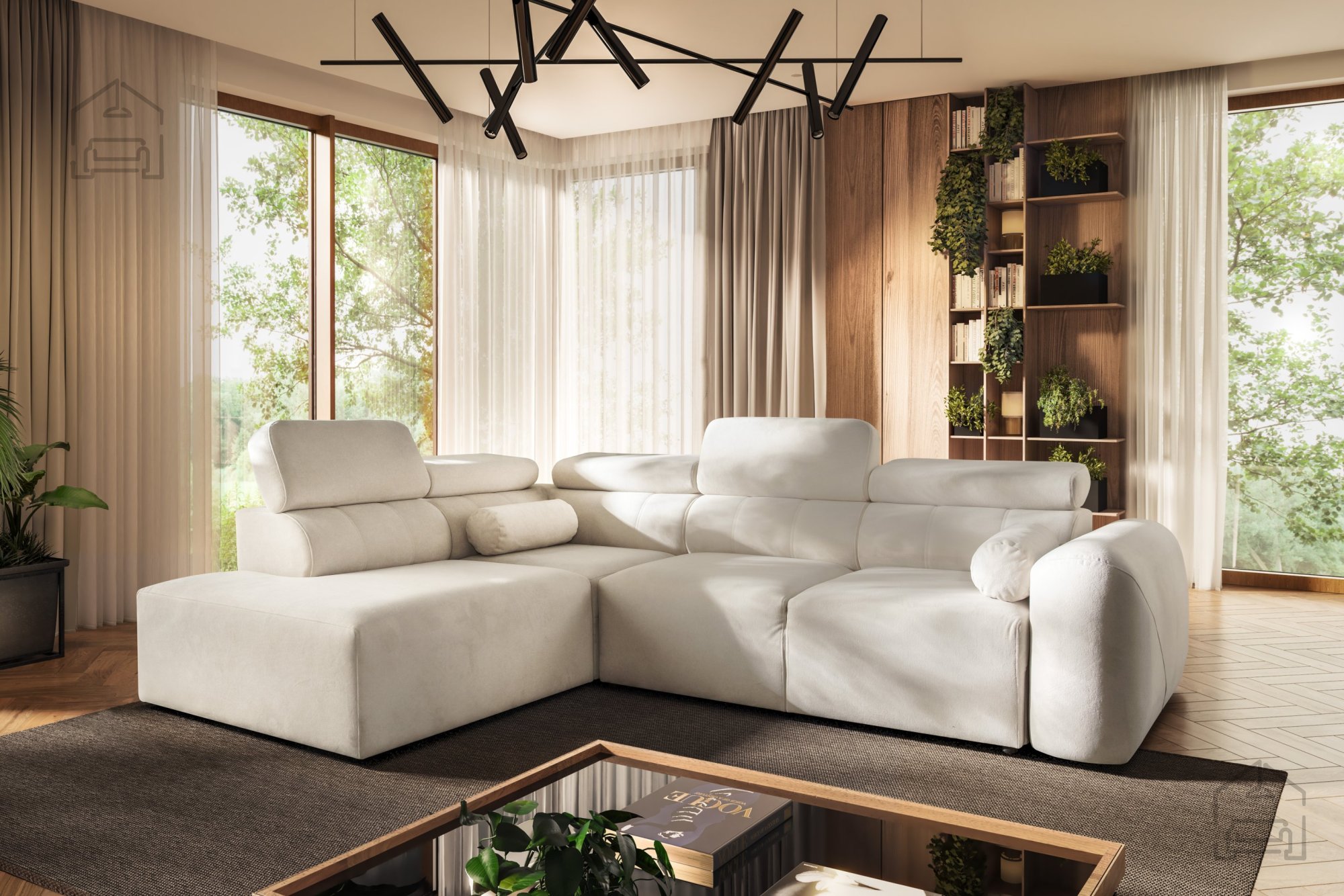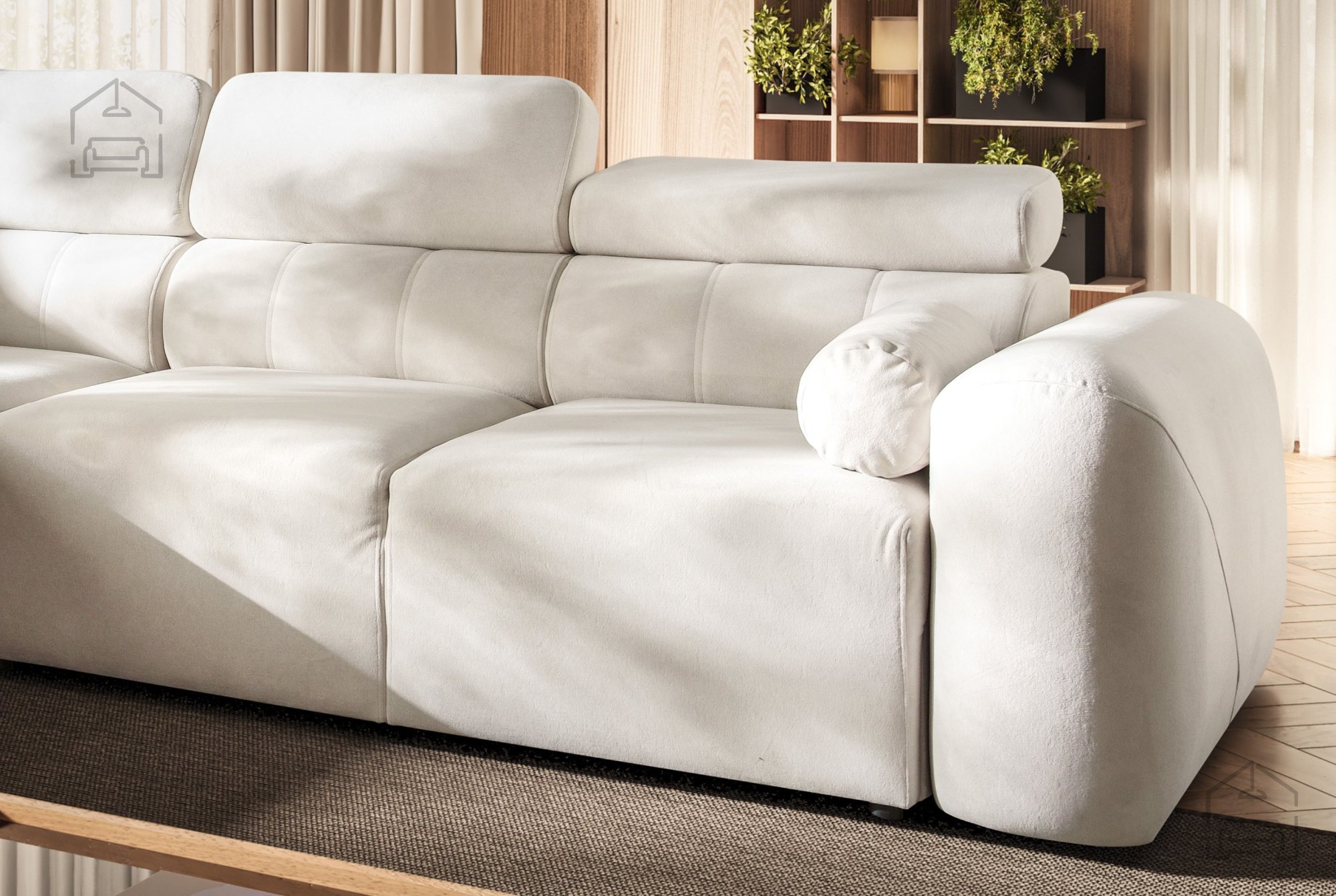 Die Ecksofa-Garnitur Volare VII ist die ideale Lösung für moderne Wohnungen, in denen das Gleichgewicht zwischen Ästhetik und Funktionalität wichtig ist. Ihr Erscheinungsbild wird durch verstellbare Kopfstützen ergänzt, die zusätzlichen Komfort beim Fernsehen oder Lesen bieten. Dank der durchdachten Konstruktion und hochwertigen Materialien ist dies ein Möbelstück, das viele Jahre lang dienen wird.
