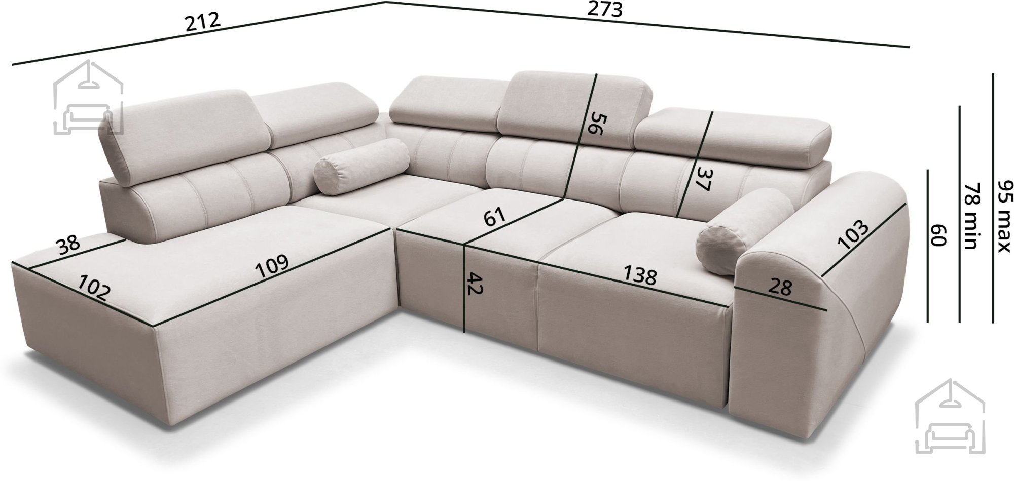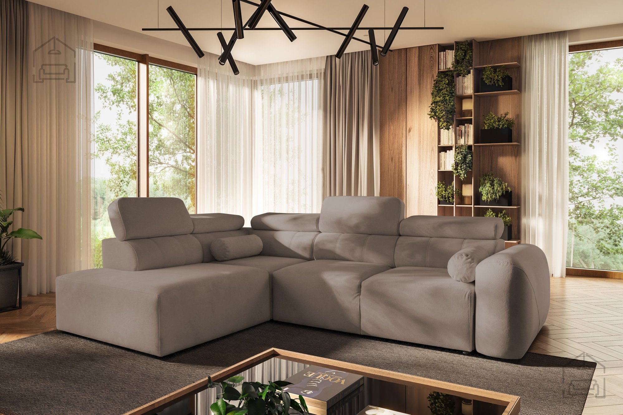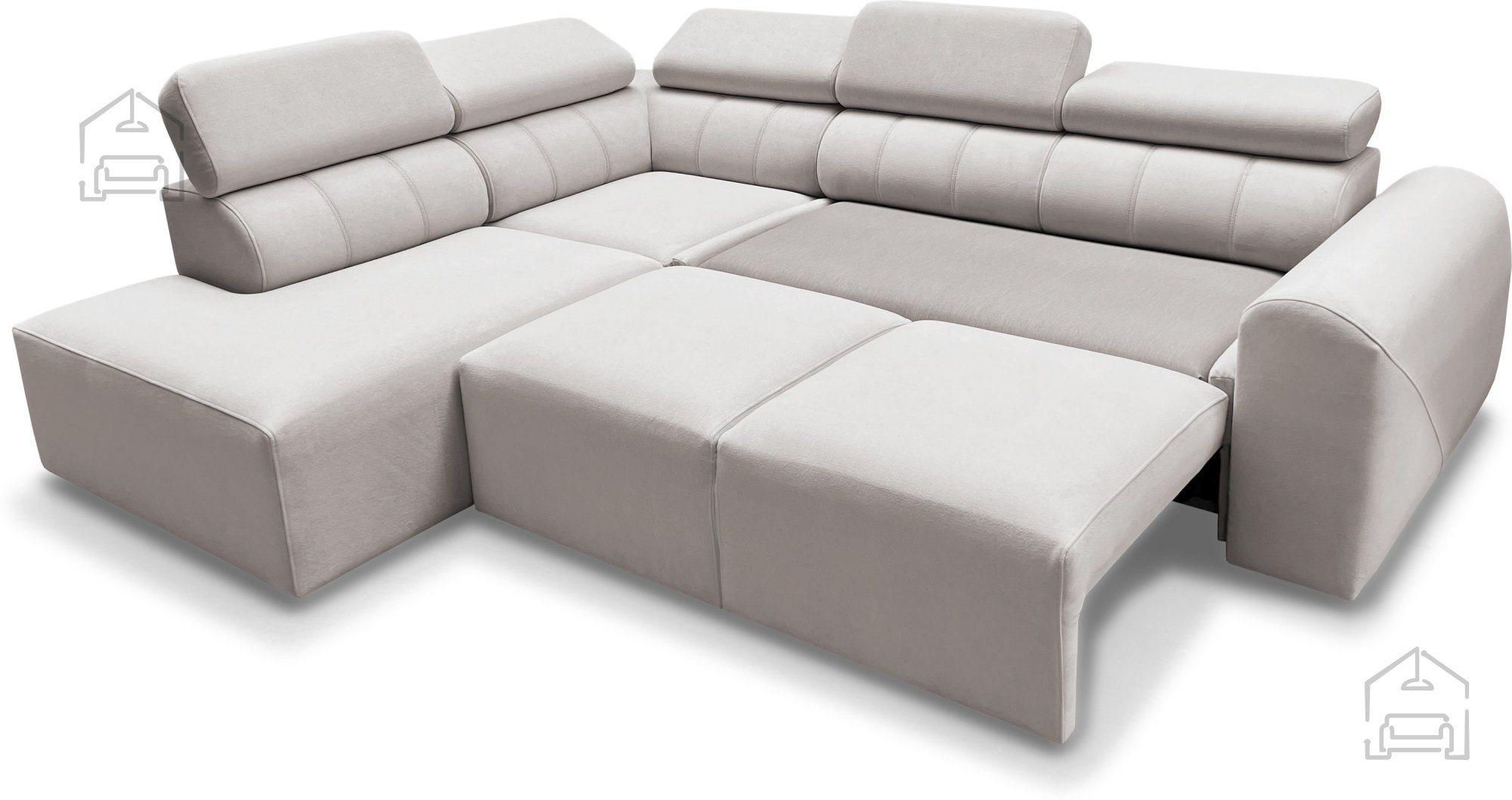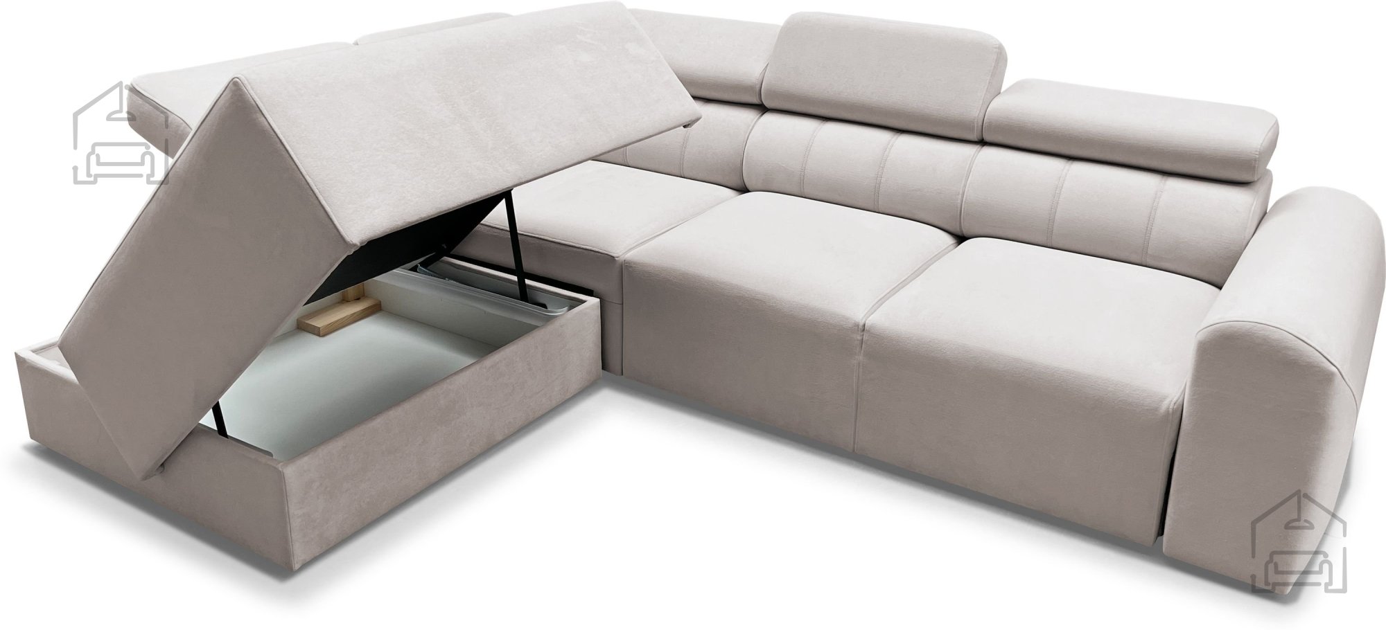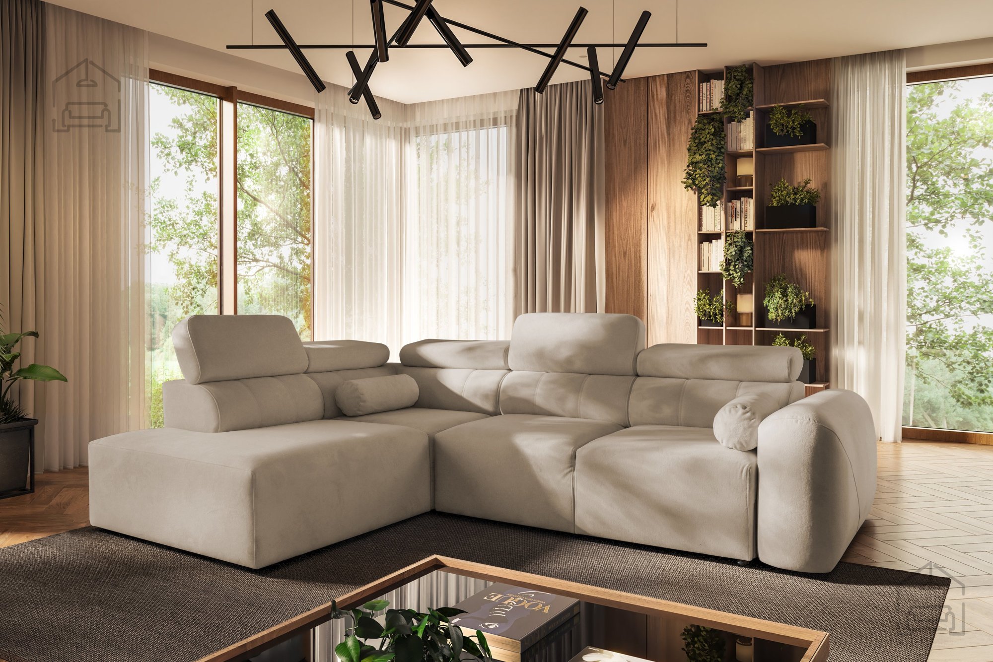 Die Ecksofa-Garnitur Volare VII ist die ideale Lösung für moderne Wohnungen, in denen das Gleichgewicht zwischen Ästhetik und Funktionalität wichtig ist. Ihr Erscheinungsbild wird durch verstellbare Kopfstützen ergänzt, die zusätzlichen Komfort beim Fernsehen oder Lesen bieten. Dank der durchdachten Konstruktion und hochwertigen Materialien ist dies ein Möbelstück, das viele Jahre lang dienen wird.